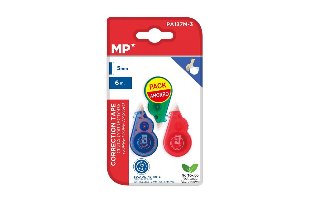 Banda de corector Mini banda corectoare uscata. Permite scrierea pe el instantaneu. Opacitate mare. Corectie frontala. Non-toxic. Aluneca lin pe hartie, fara a se bloca. Latimea benzii: 5 mm. Lungime: 6 m. Blister de 3 unitati.