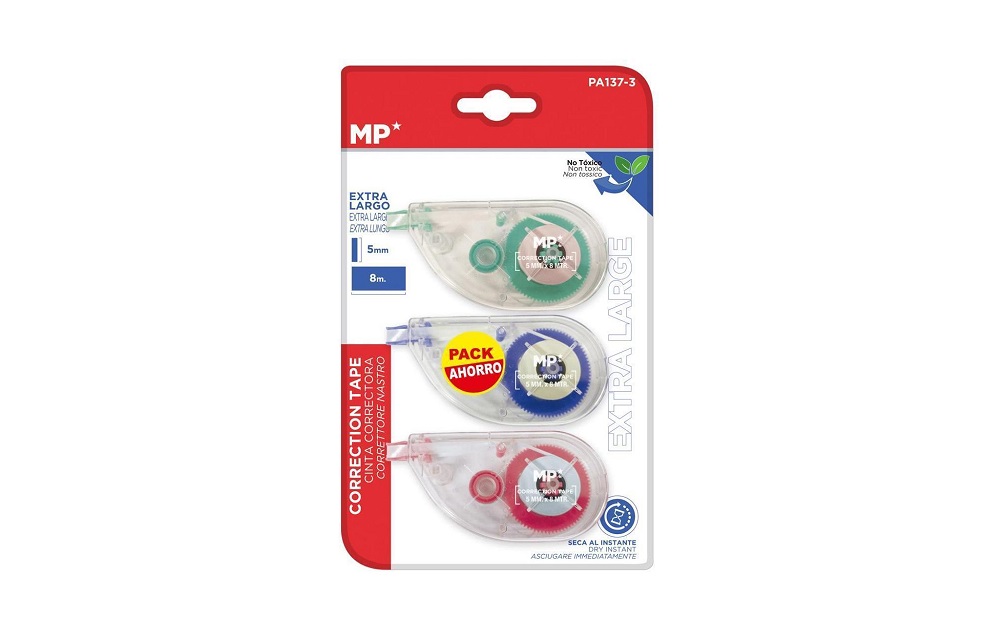 CORECTOR Banda corectoare uscata foarte lunga. Permite scrierea pe el instantaneu. Opacitate mare. Corectie laterala. Non-toxic. Aluneca lin pe hartie, fara a se bloca. Latimea benzii: 5 mm. Lungime: 8 m. Blister de 3 unitati.