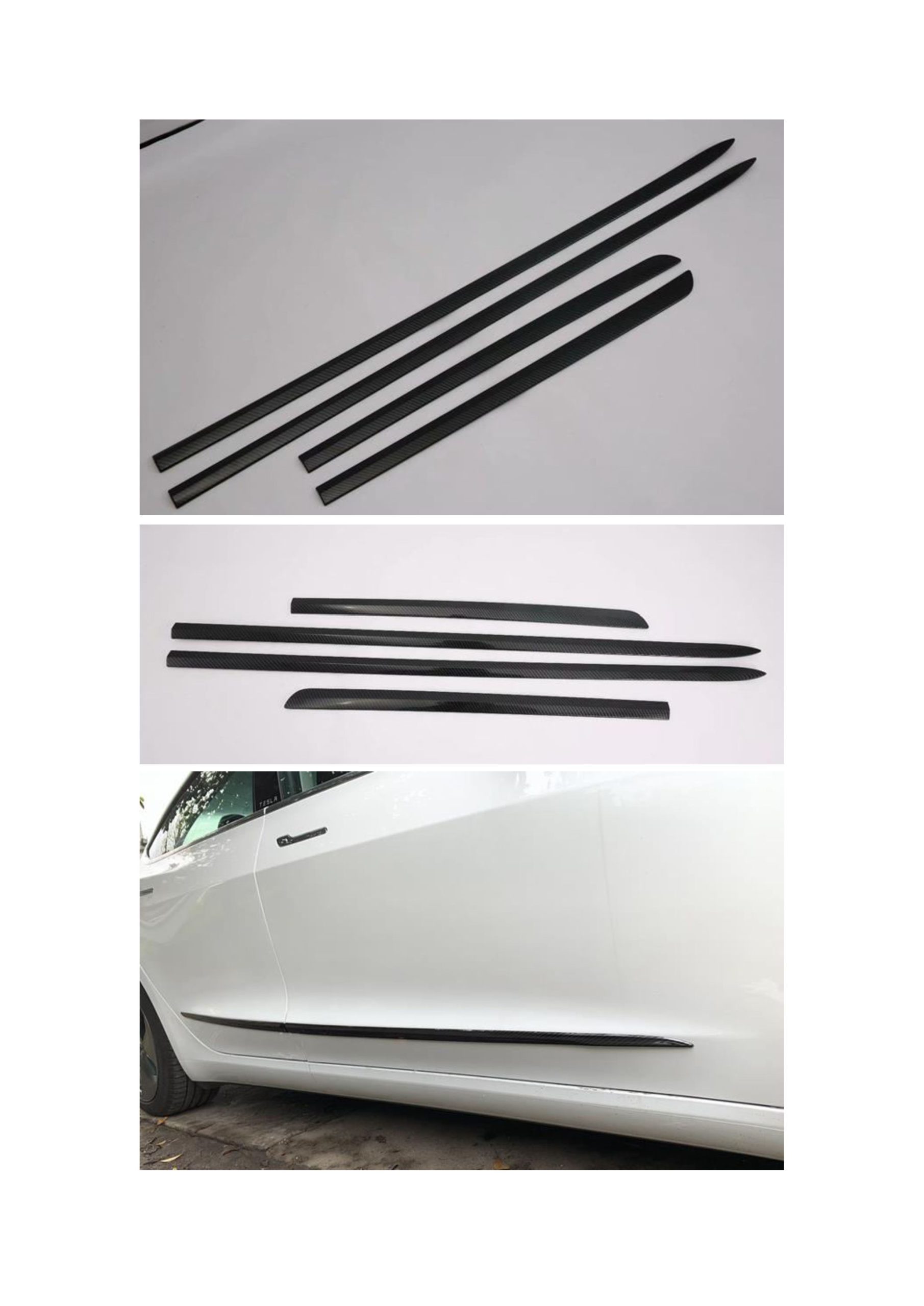 Bandouri laterale uși carbon – Tesla Model Y (set 4 bucăți)