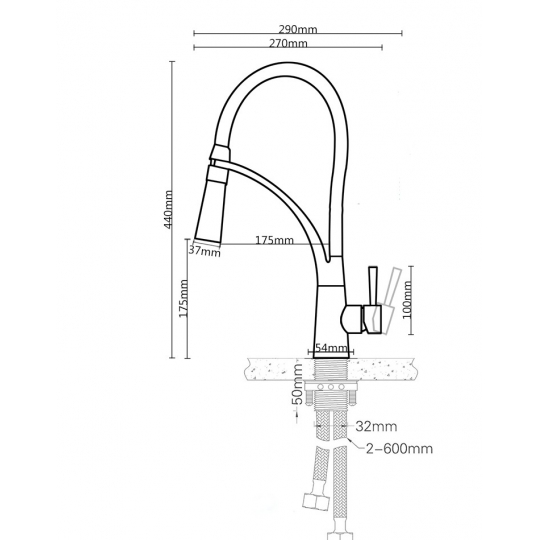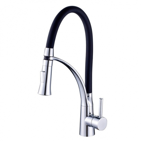 Baterie lebada inalta ,dispune de o serie de functii speciale cum ar fi: pipa flexibila imbracata in silicon pentru o rezistenta marita, suport tija flexibila solid cu sistem de prindere, perlator 2 functii cu buton (jet spray si normal).