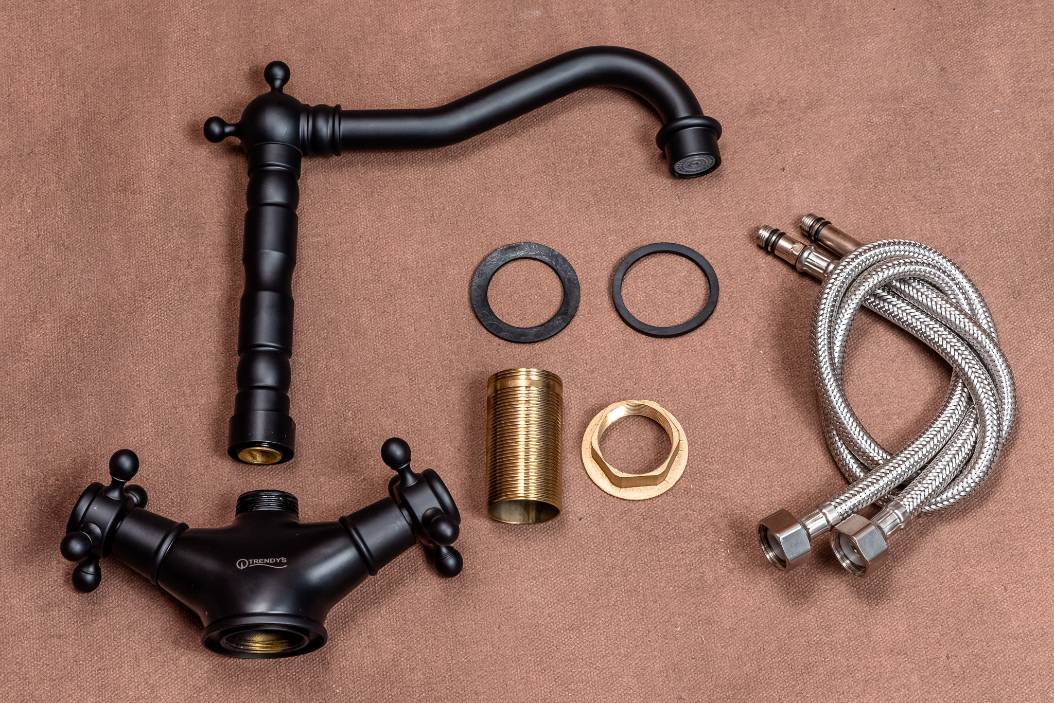 Baterie lebada negru  antichizata retro montare blat – chiuveta