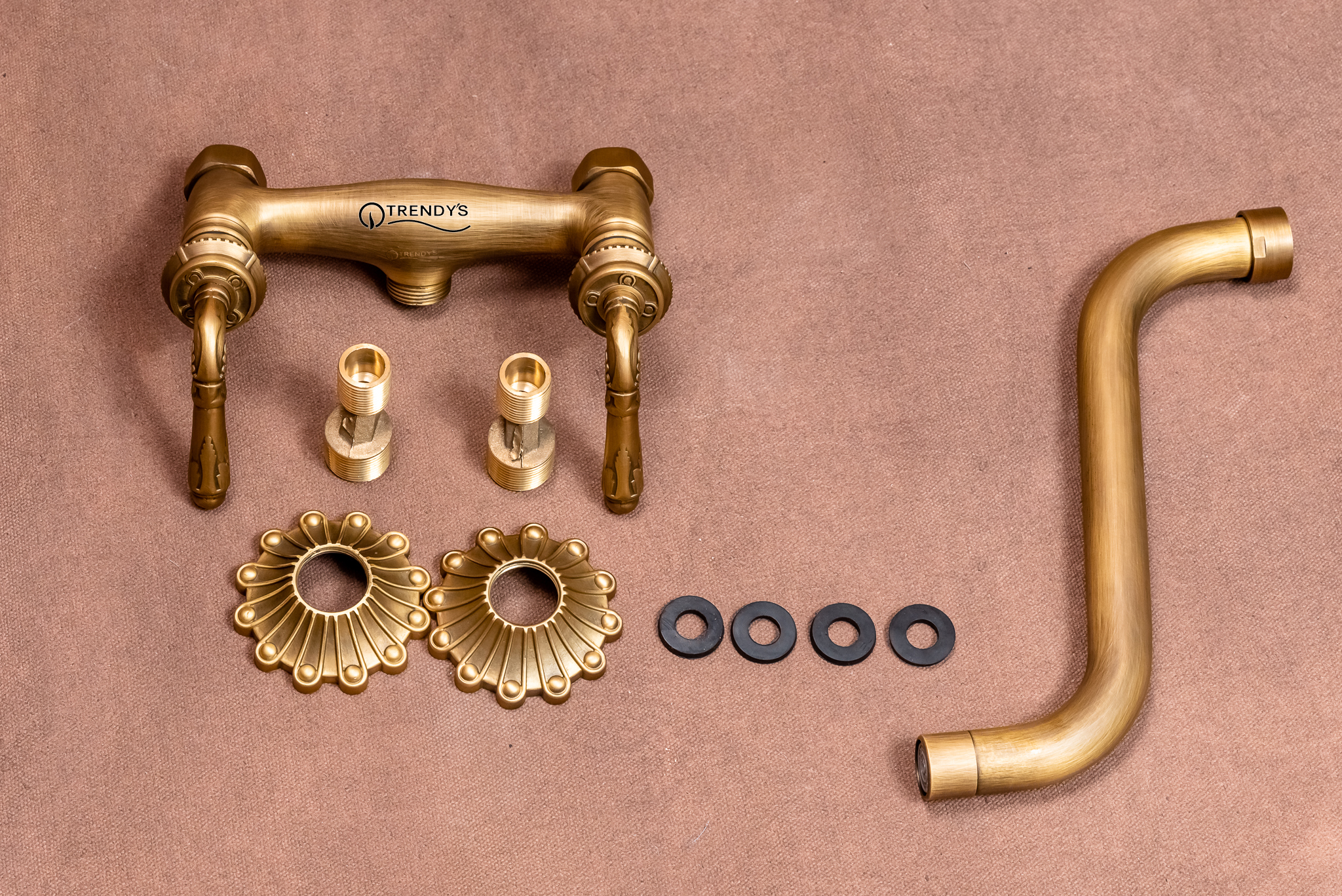 Baterie bucatarie prindere perete pipa lunga mobila model cu broderie bronz antichizat Venustar .