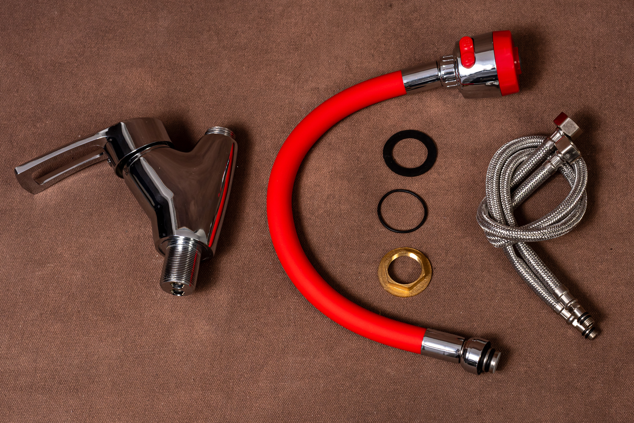 Baterie bucatarie , Venustar, pipa flexibila rosie  , perlator doua functii