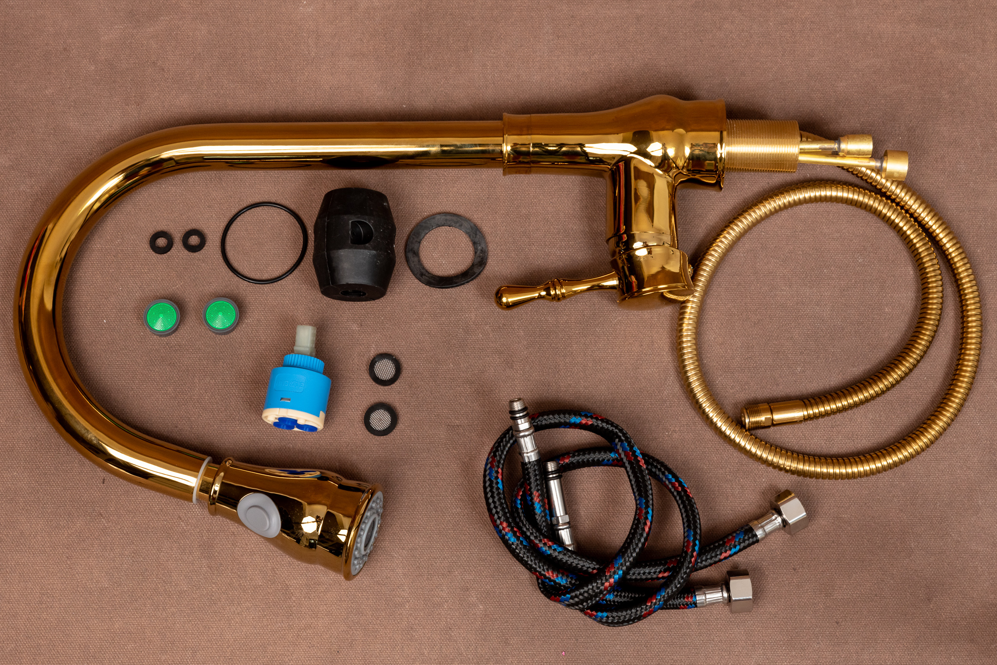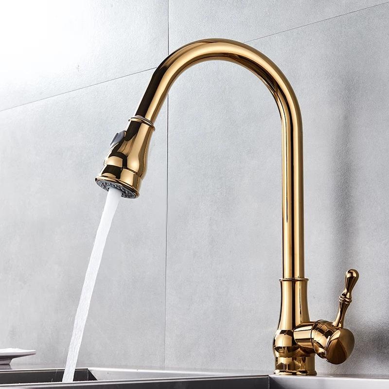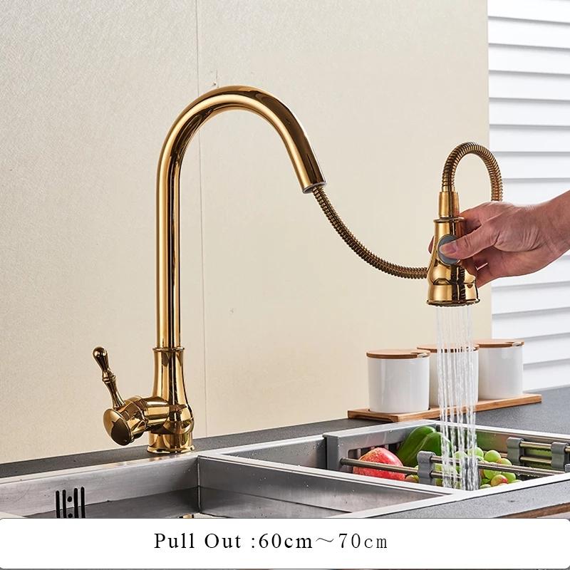 Baterie bucatarie Venustar, tip lebada,para dus extractabila, perlator 2 functii, gold