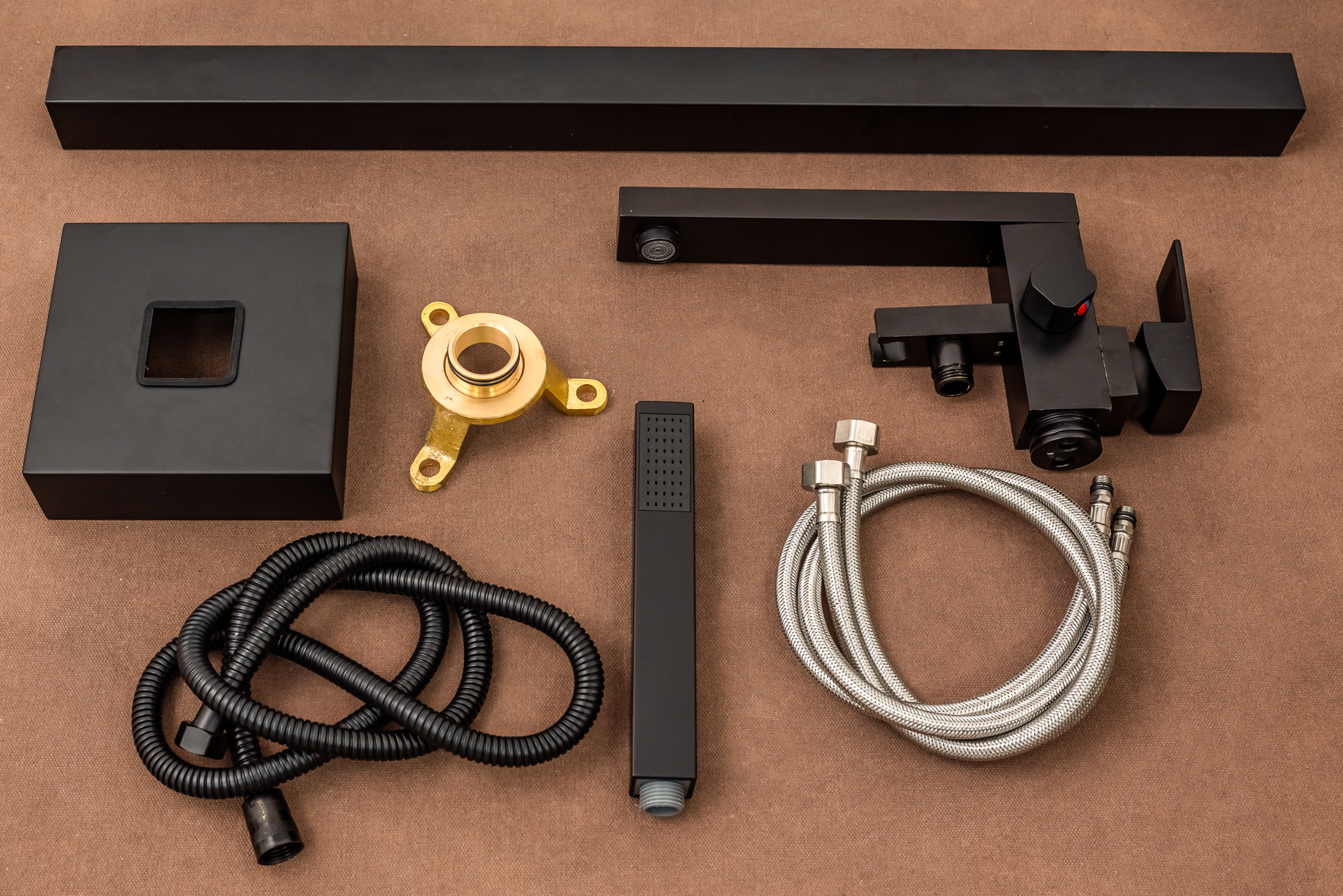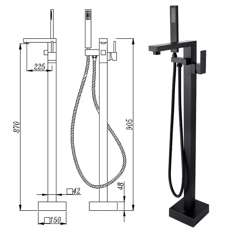 Baterie cada freestanding , design rectangular , negru mat Venustar