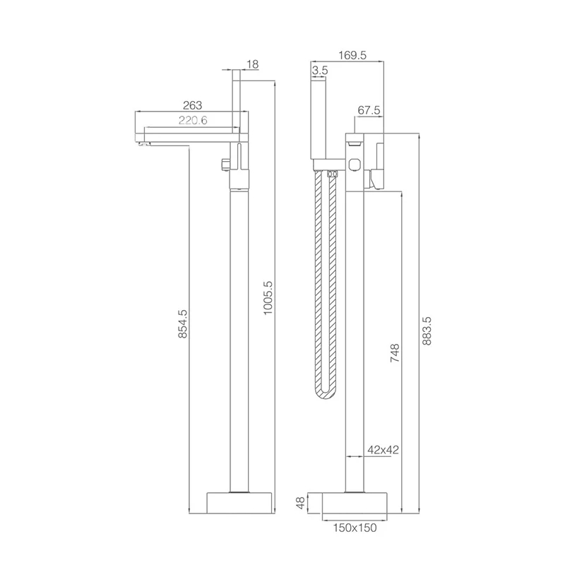 Baterie cada cu fixare in podea pentru cazile tip freestanding,construita din alama sanitara .