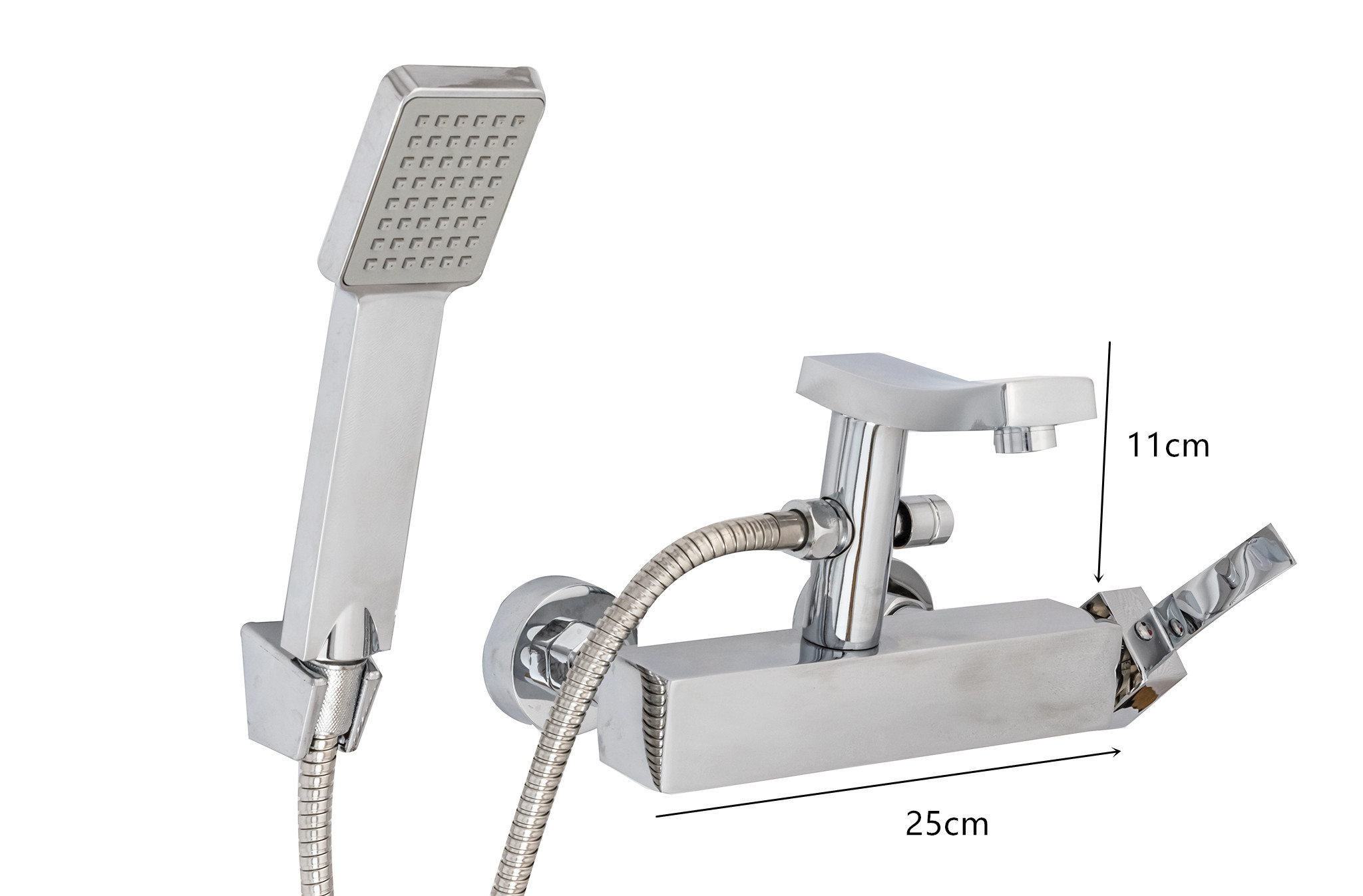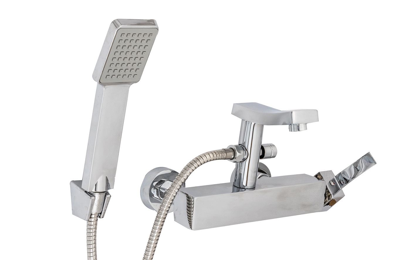 Bateria este construita integral din alama sanitara surprinde printr-un aspect placut finisaj cromat lucios si design rectangular.