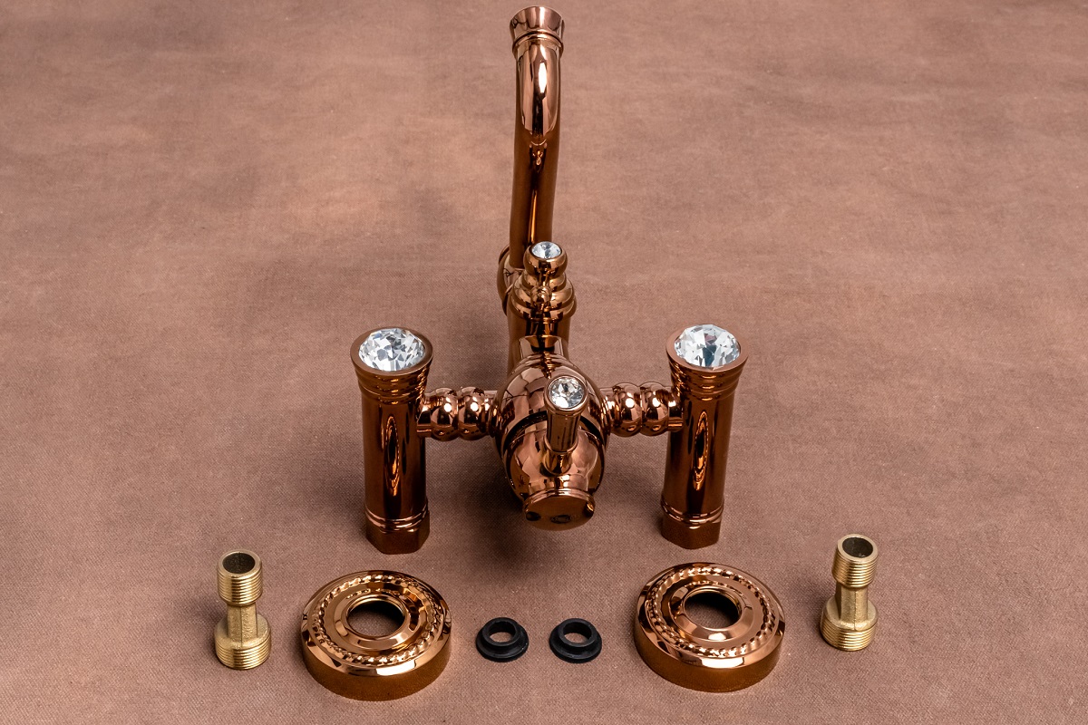 • Para dus mobila nuanta Rose Gold cu suport de fixare pe perete in aceeasi nuanta de culoare aurie