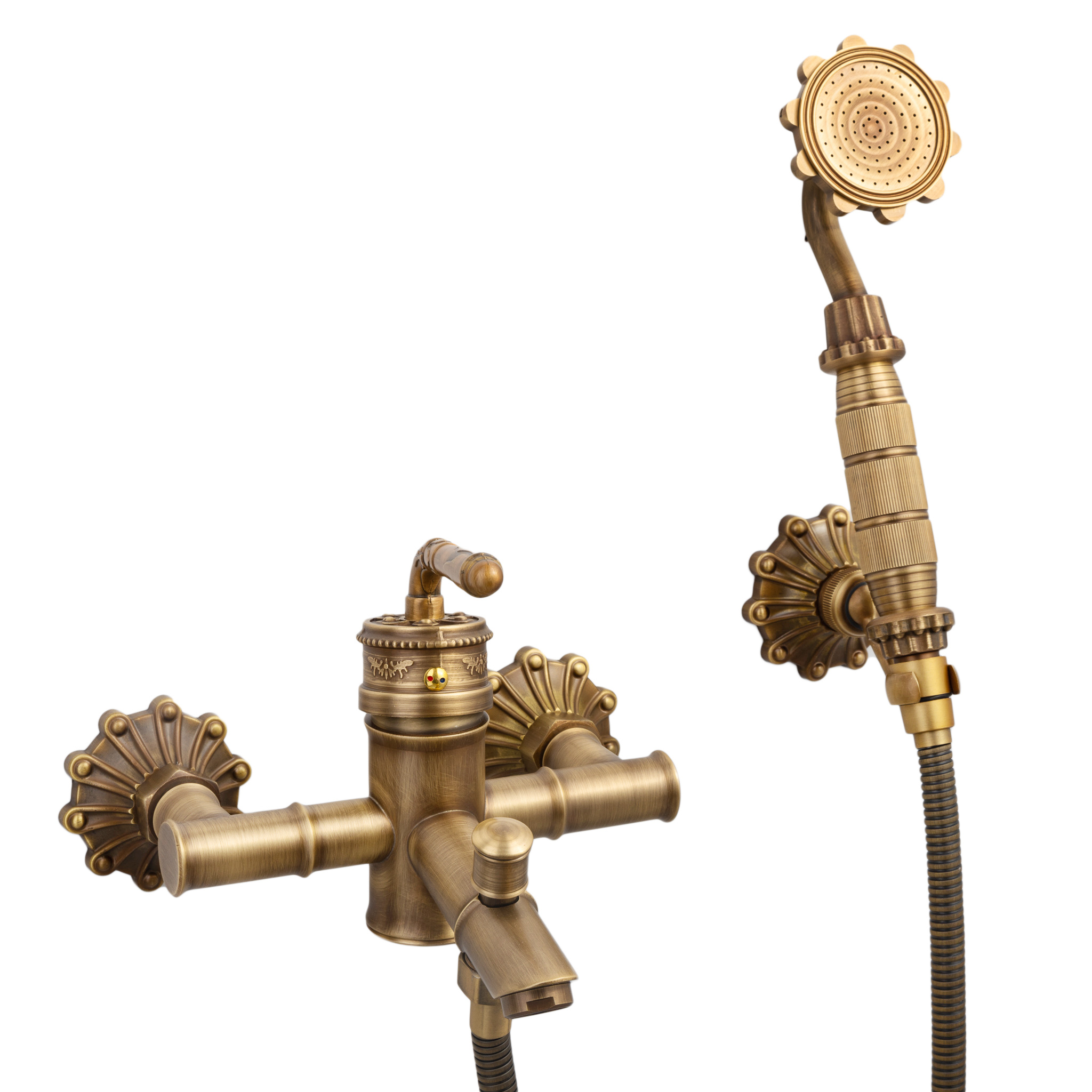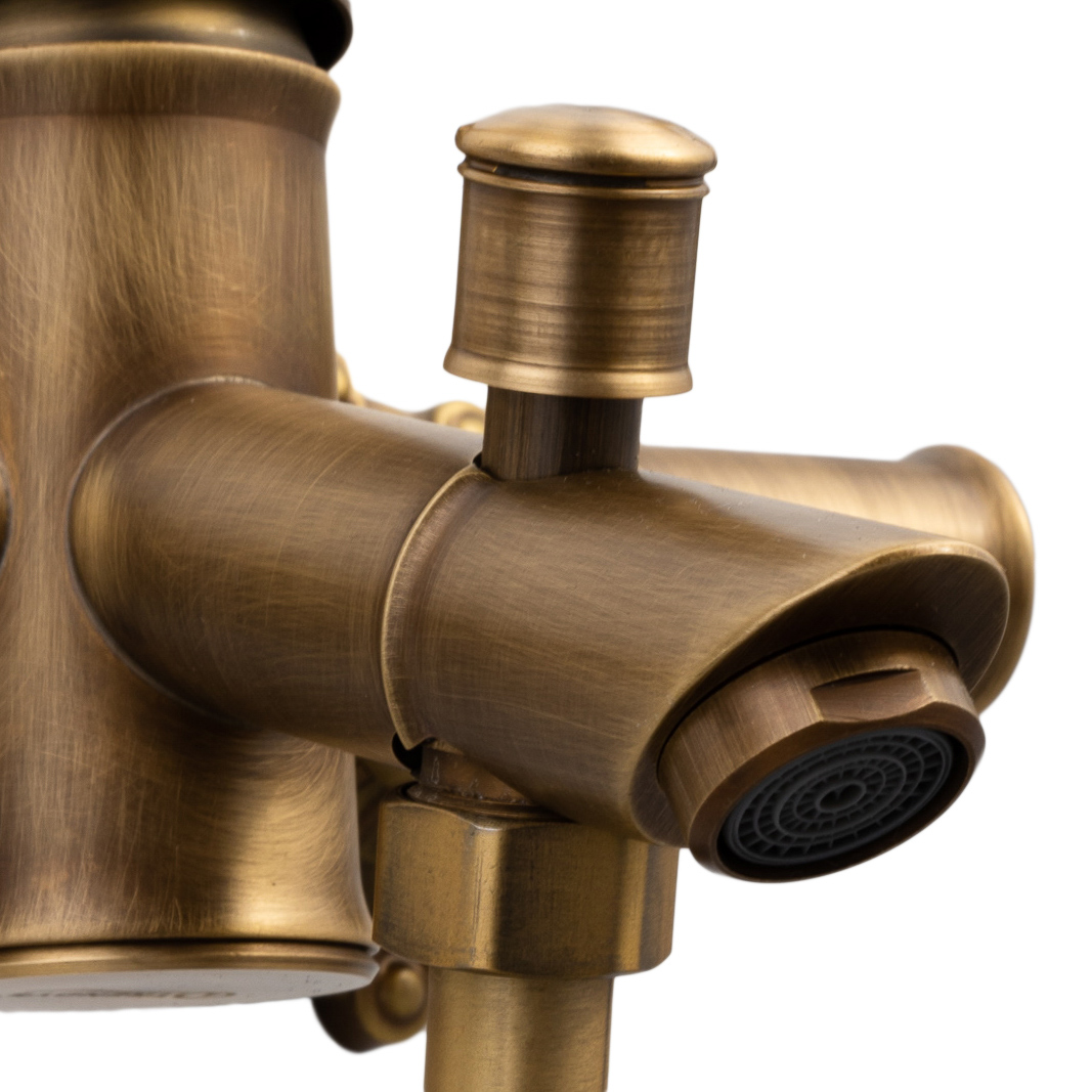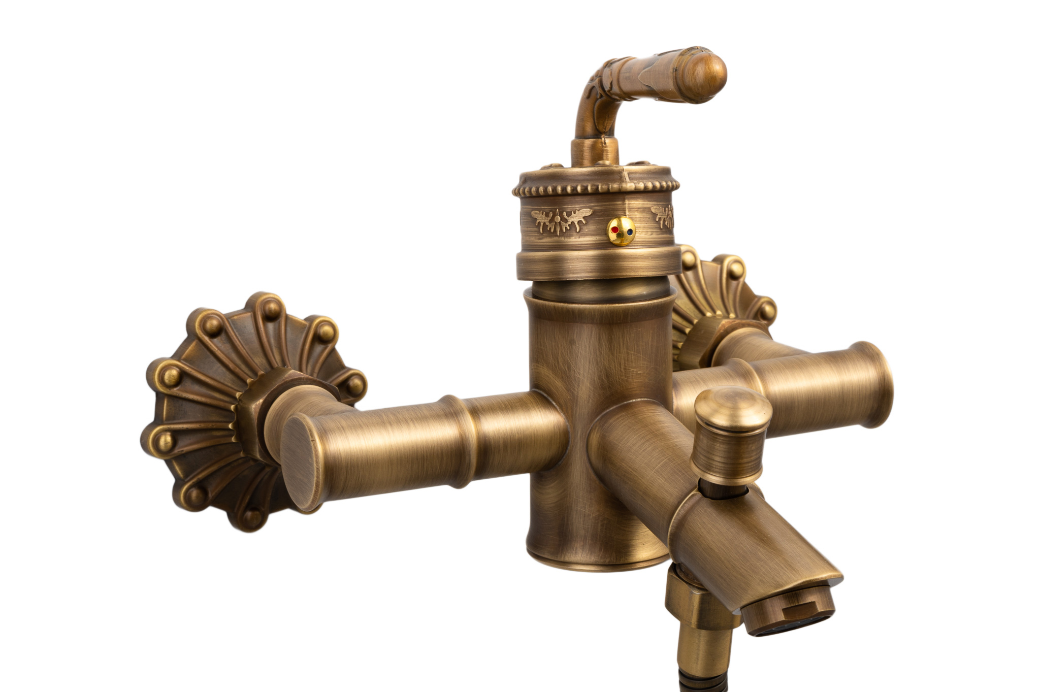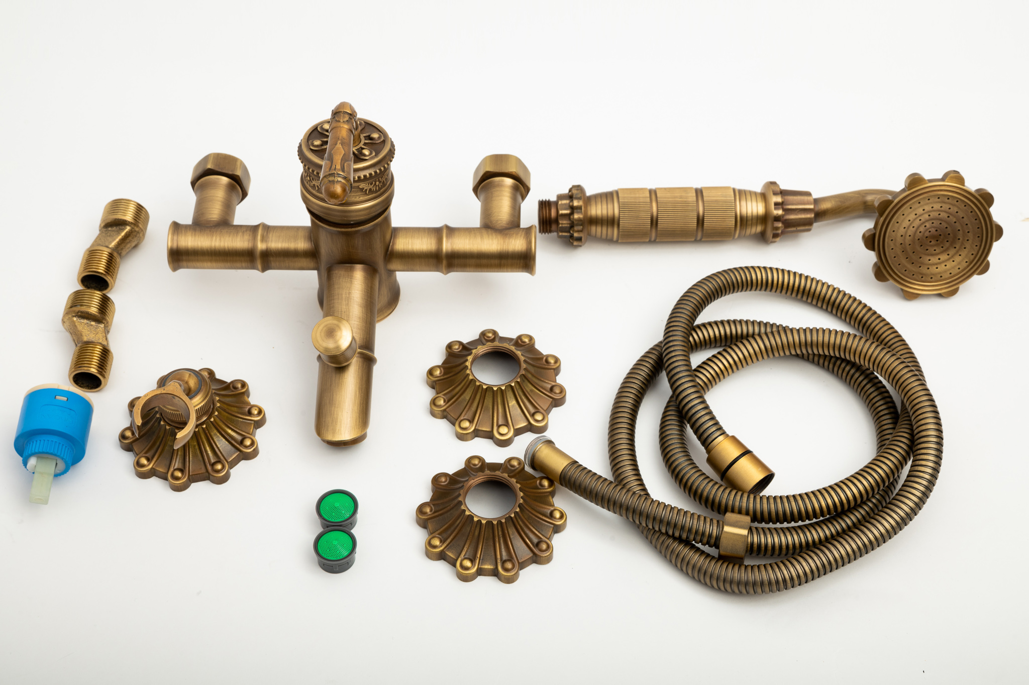 Bateria este construita integral din alama sanitara , cu aspect antichizat .