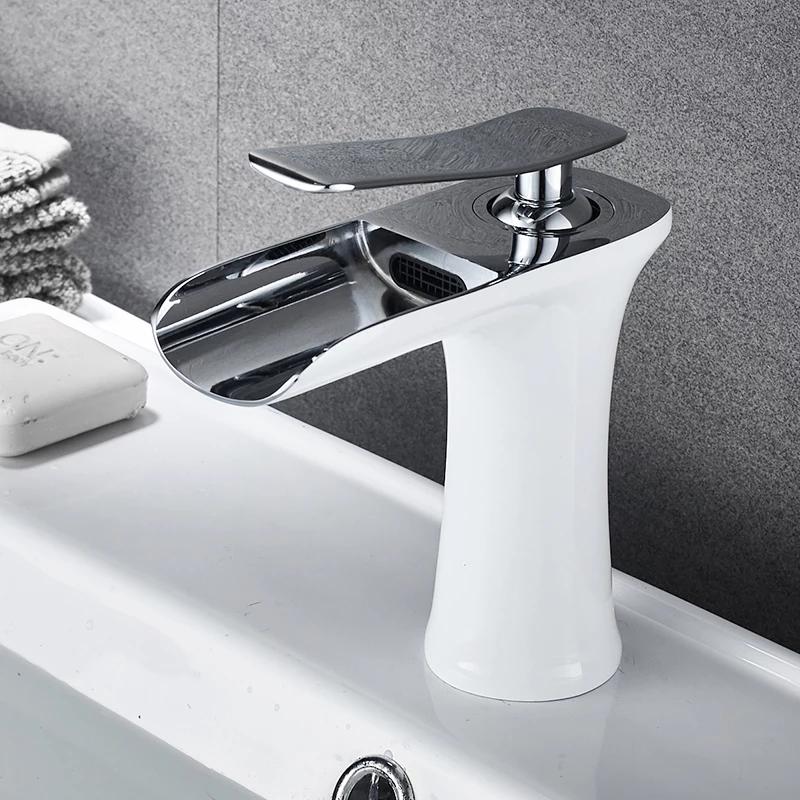 Baterie lavoar cascada ,montare chiuveta baie, white-crom Venustar