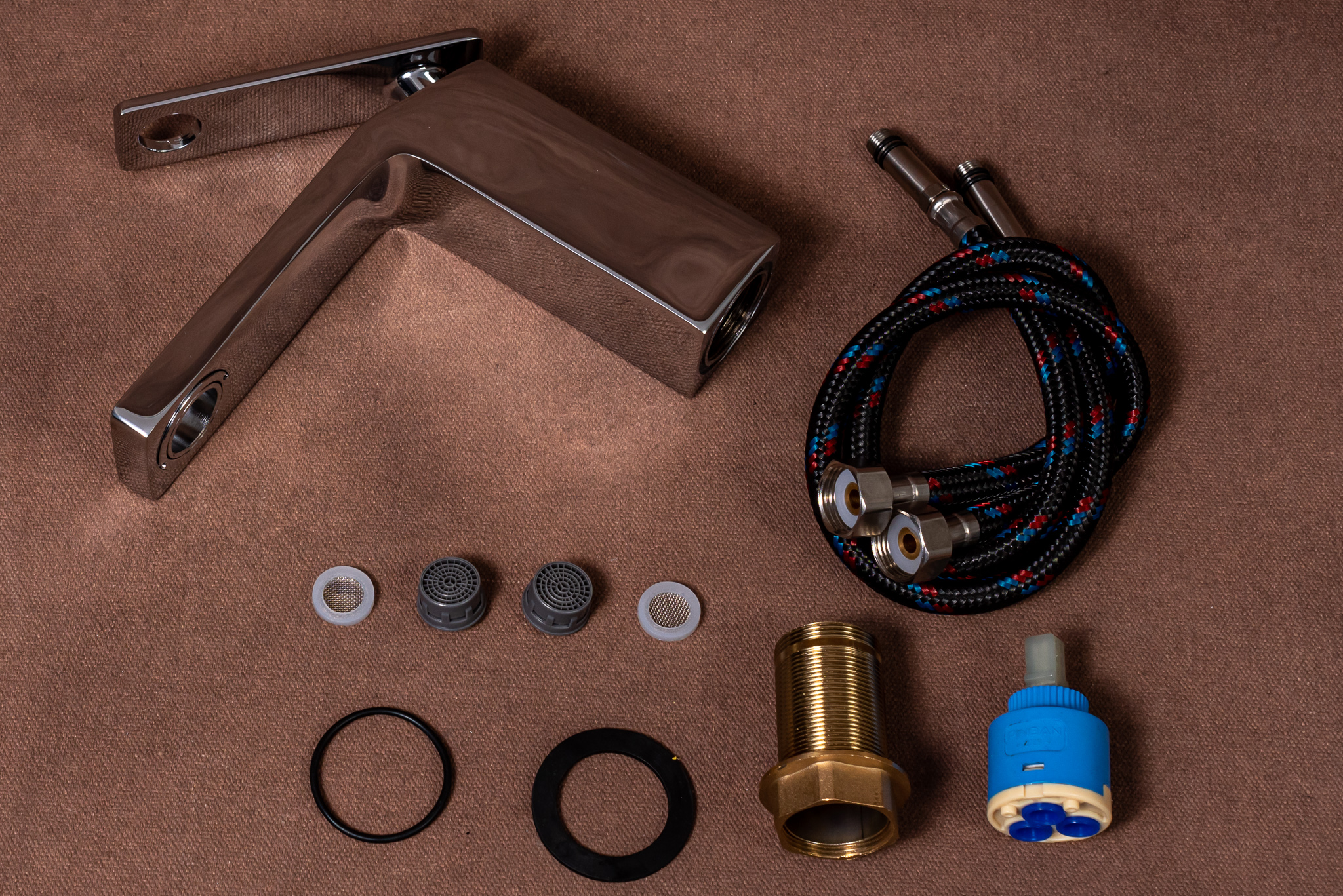-Sistemul de fixare al bateriei pe blat/ chiuveta , ce consta intr-o piulita cu ax tubular ( asigura o fixare stabila pe orice tip de lavoar)