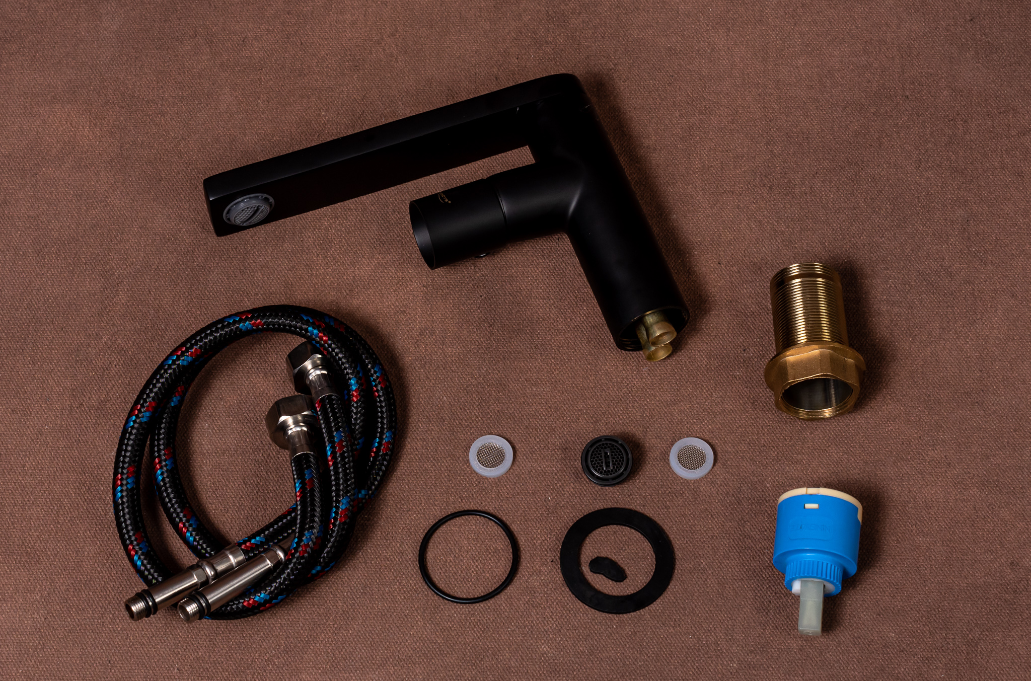 -Sistemul de fixare al bateriei pe blat/ chiuveta , ce consta intr-o piulita cu ax tubular ( asigura o fixare stabila pe orice tip de lavoar)