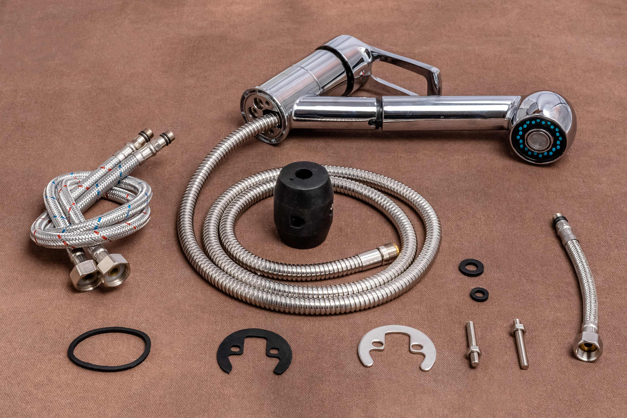 Baterie lavoar/ salon cu para dus extractabila montare chiuveta Venustar aspect cromat.