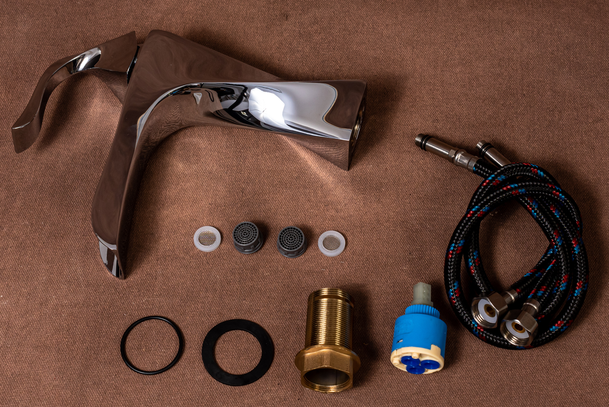 Bateria este construita integral din alama sanitara ,material fiabil si rezistent , fara contiunt de plumb , fapt ce impiedica modificarea parametrilor chimici sau gustul apei .