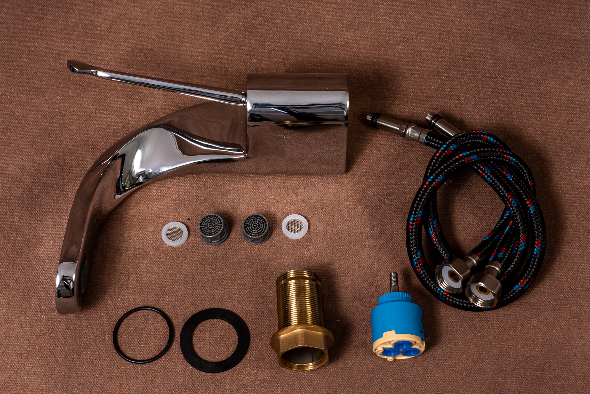 -Sistemul de fixare al bateriei pe blat/ chiuveta , ce consta intr-o piulita cu ax tubular ( asigura o fixare stabila pe orice tip de lavoar)