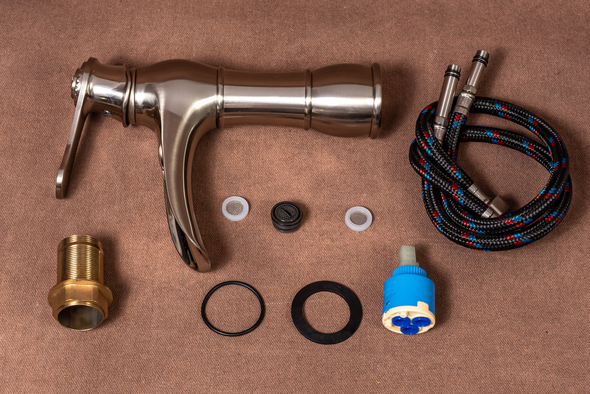 -Sistemul de fixare al bateriei pe blat/ chiuveta , ce consta intr-o piulita cu ax tubular ( asigura o fixare stabila pe orice tip de lavoar)