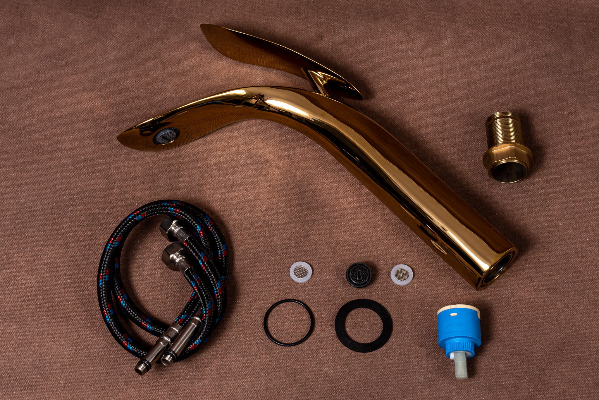 Bateria este construita din alama sanitara , material fiabil si rezistent , acoperita la exterior cu un invelis nuanta gold , rezistent la umezeala si abrazitate .