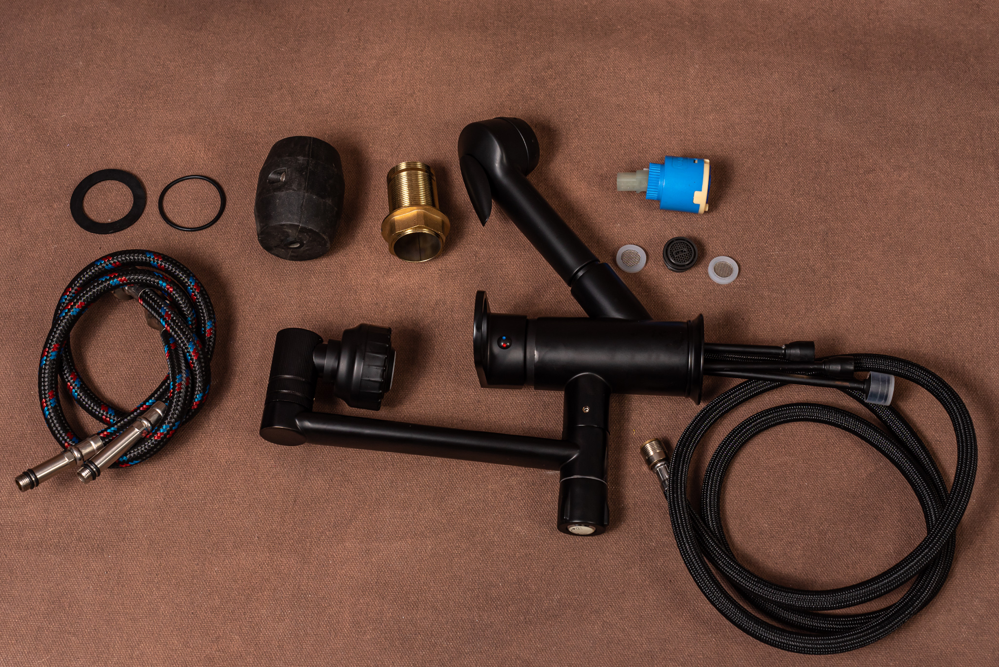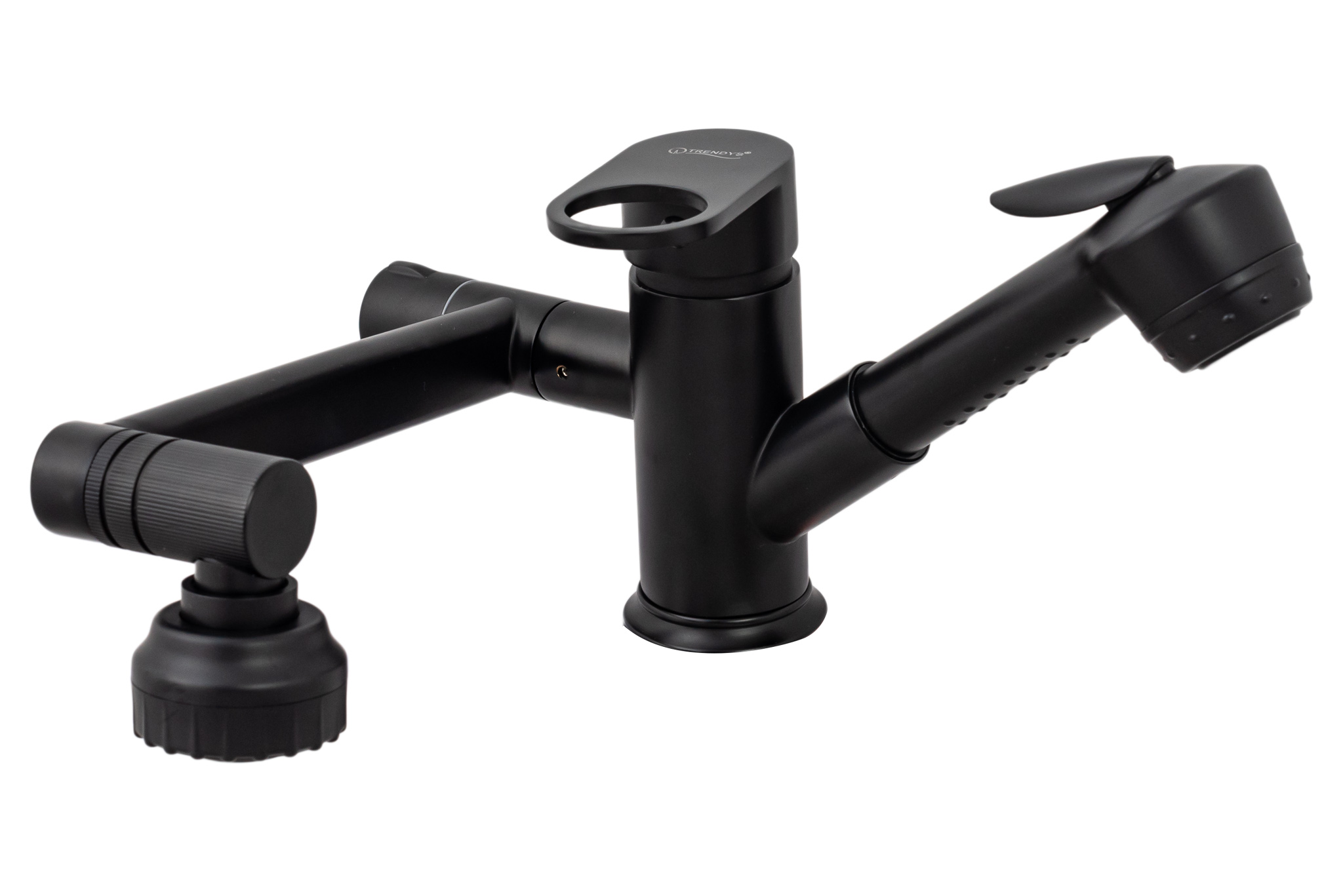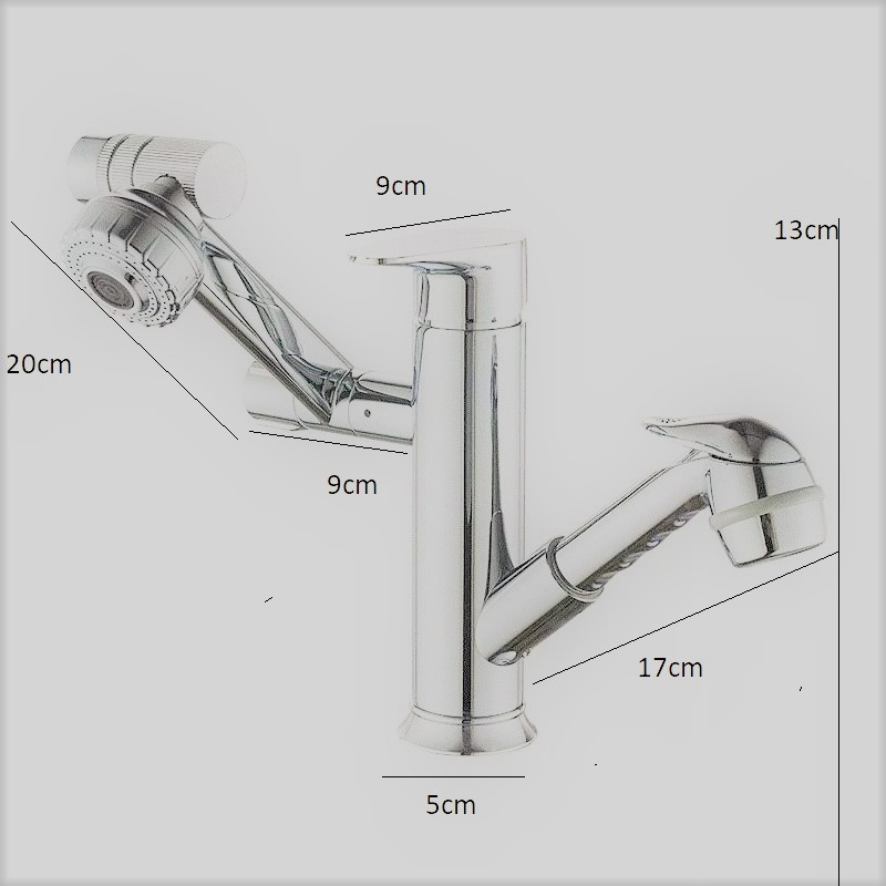 Para dus extractabila – cu parghie de actionare a jetului de apa are un inportatnt rol in spalarea obiectelor din afara zonei chiuvetei. Furtunul de dus poate fi extras pana la 120cm, dupa utilizare acesta revine in soclul special conceput .