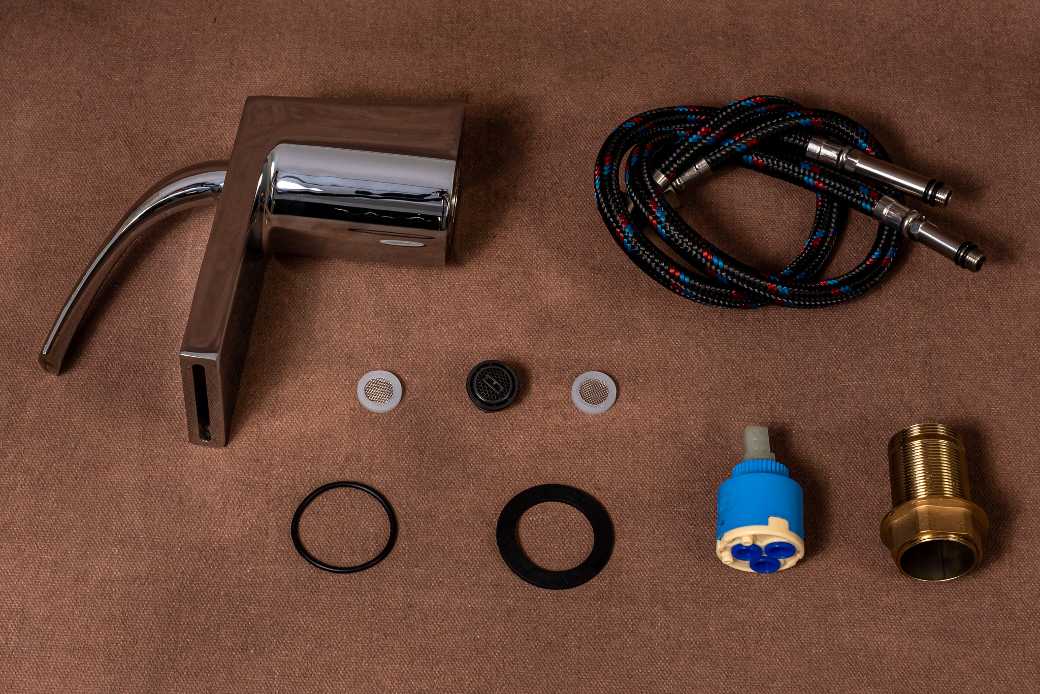 -Sistemul de fixare al bateriei pe blat/ chiuveta , ce consta intr-o piulita cu ax tubular ( asigura o fixare stabila pe orice tip de lavoar)