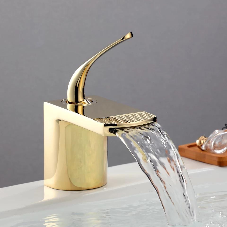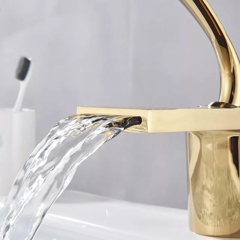 Baterie lavoar Venustar, tip cascada , montare chiuveta baie , Gold