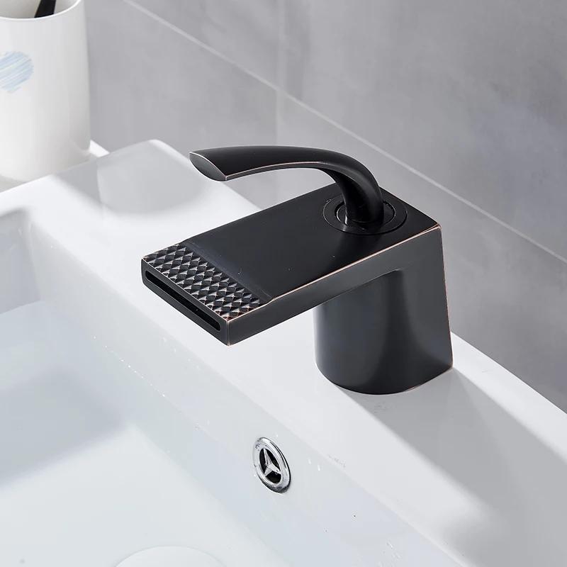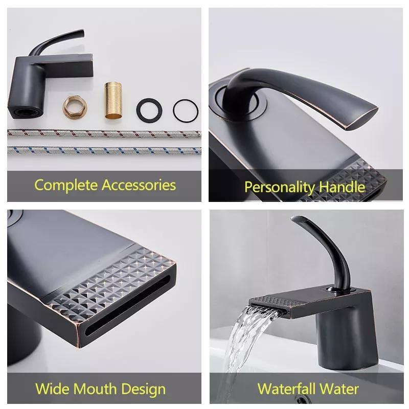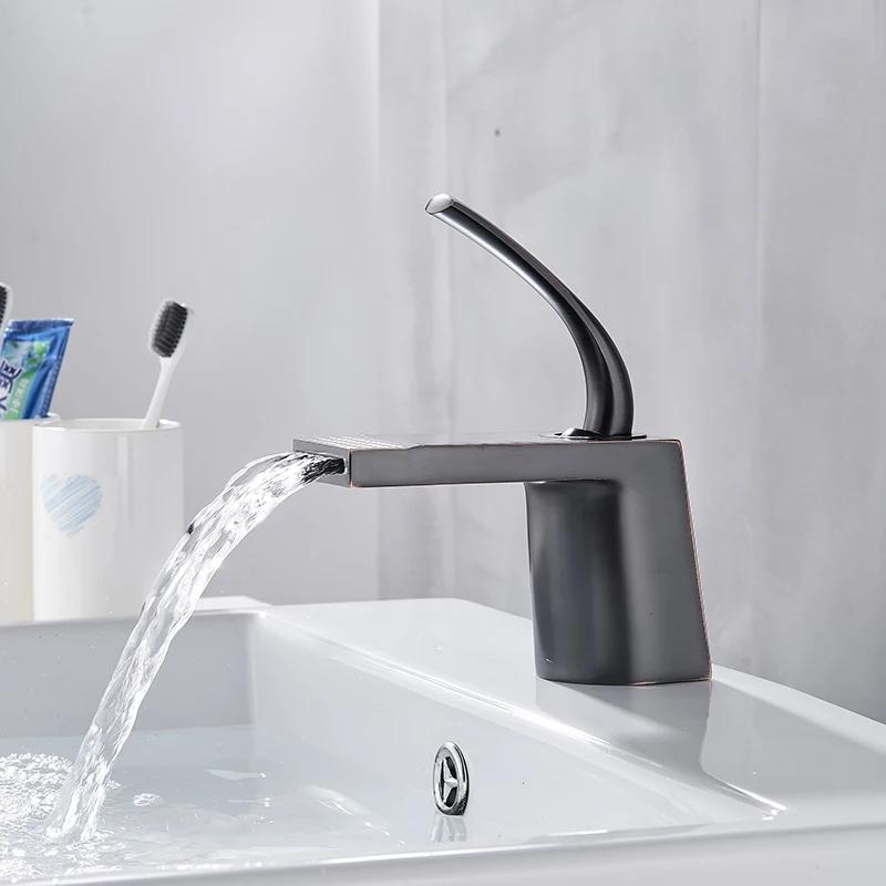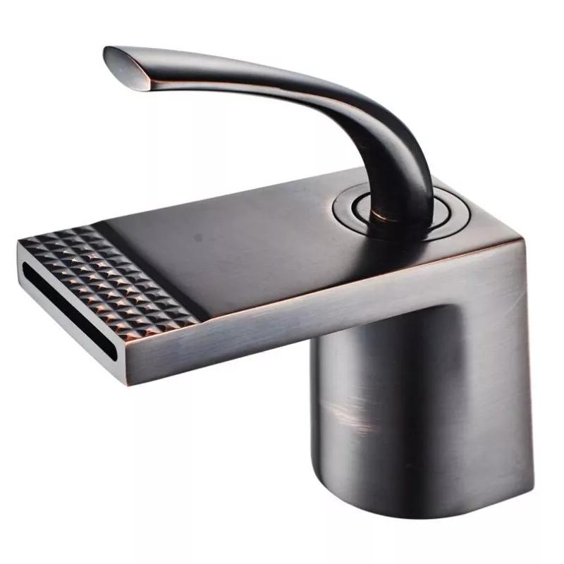 Baterie lavoar Venustar, tip cascada , montare chiuveta baie , negru antichizat