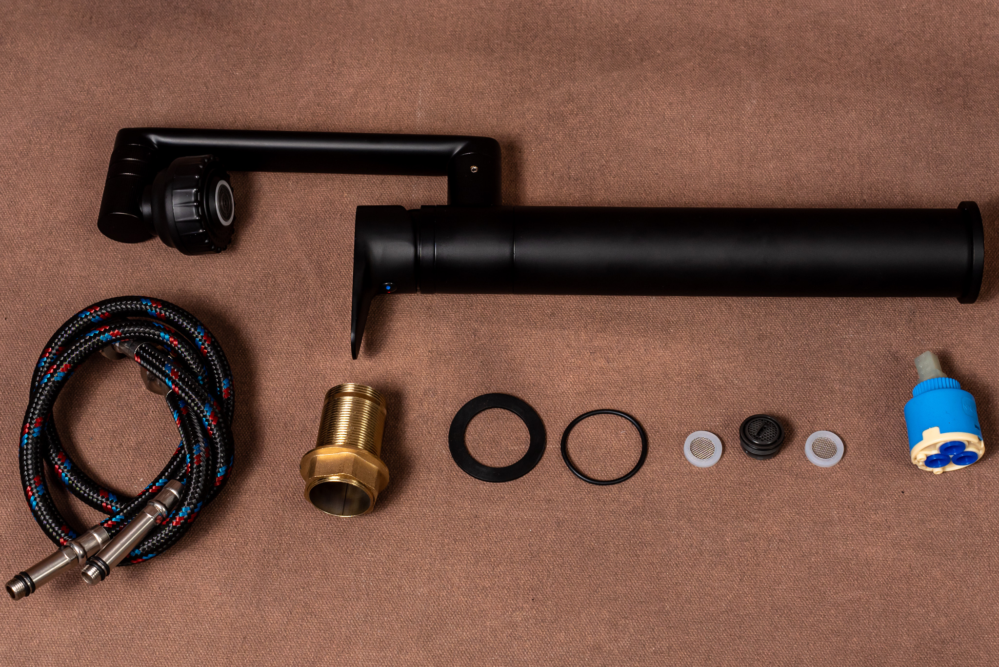 Baterie lavoar Venustar,montare pe blat, pipa mobila ,perlator reglabil cu doua functii ,negru mat