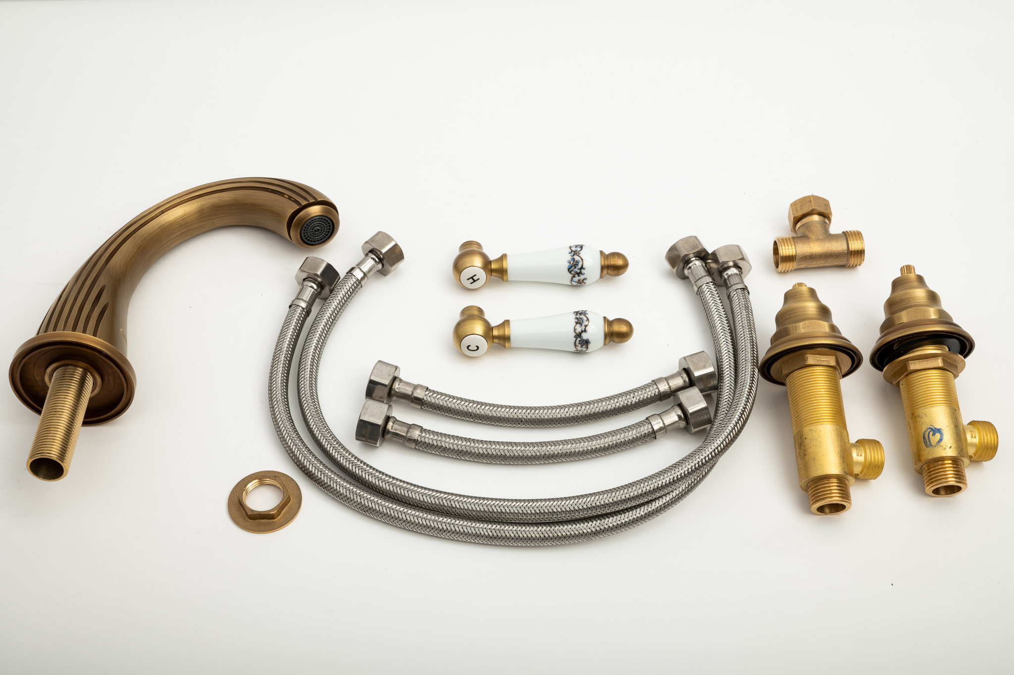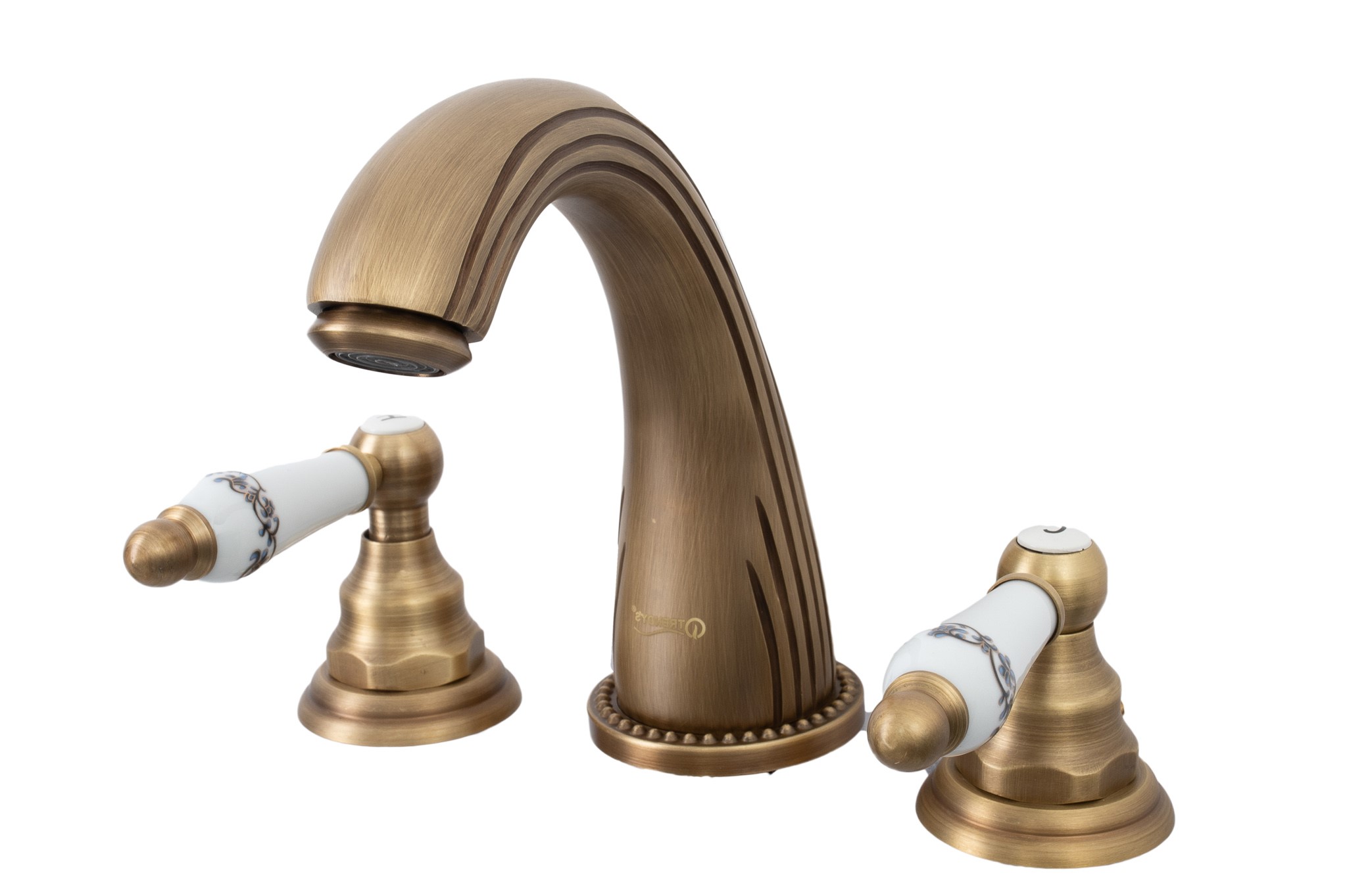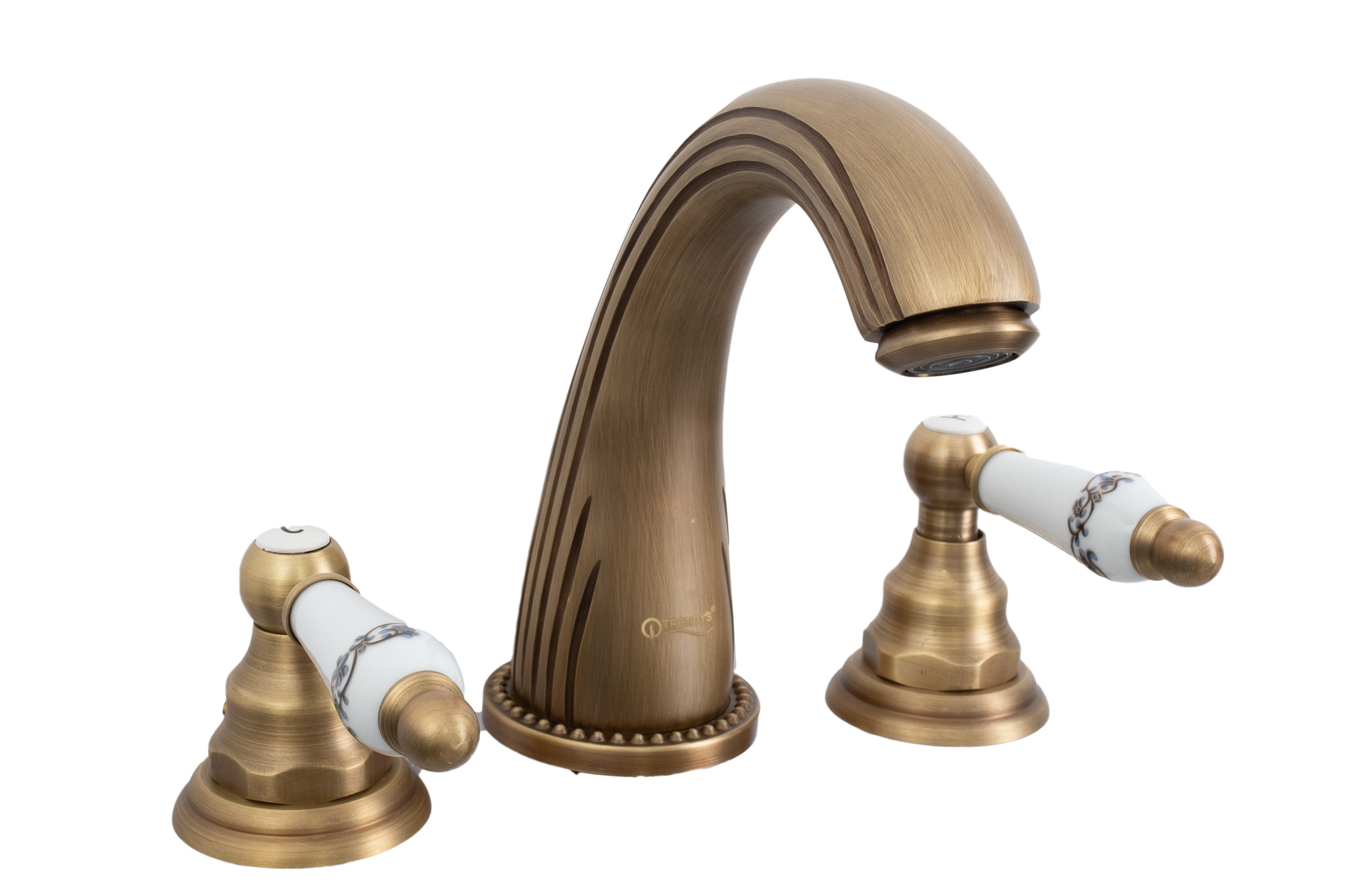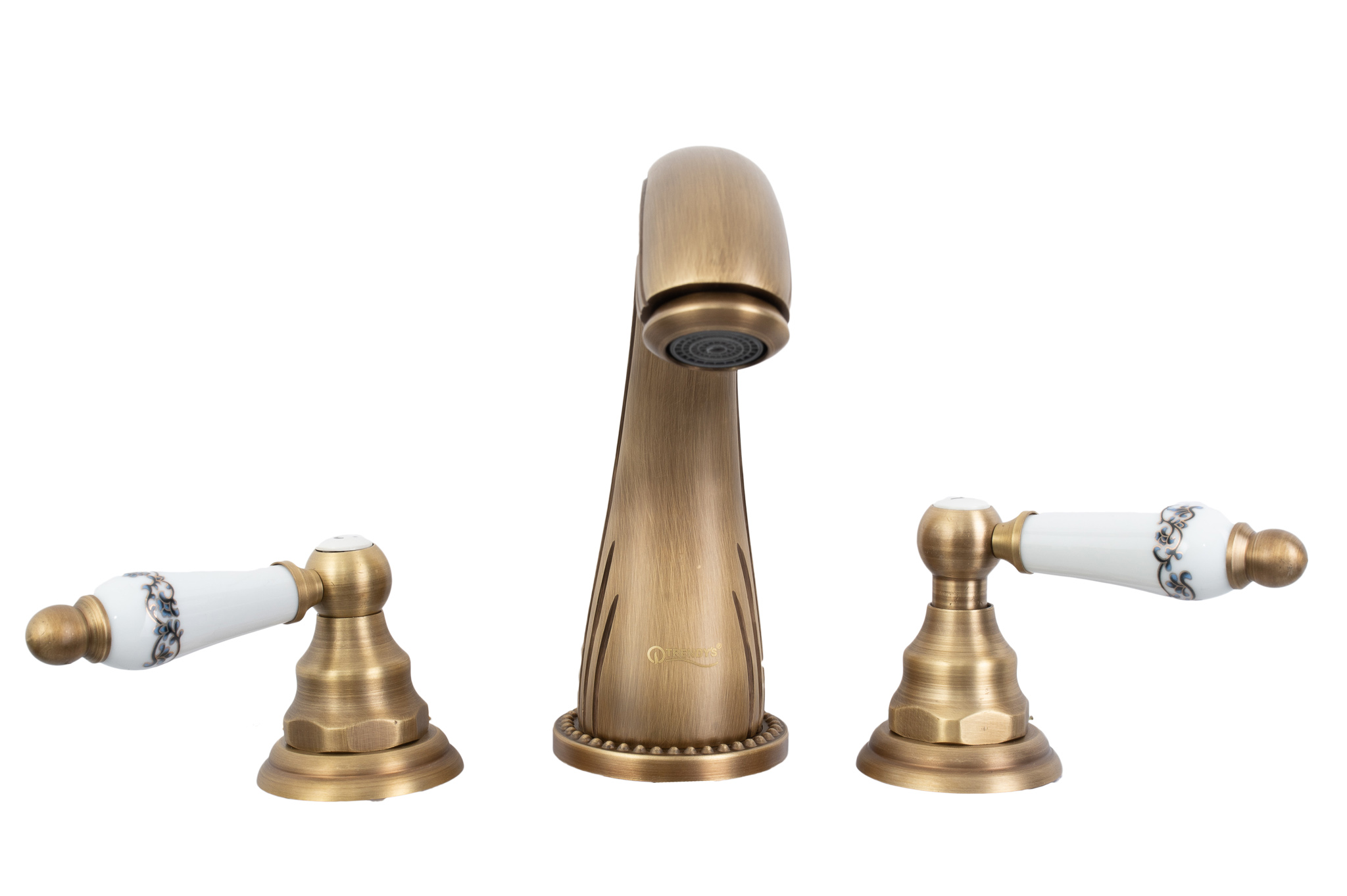 Baterie lavoar Venustar ,cu trei cai ,montare chiuveta baie, bronz antichizat, cu broderie ceramica