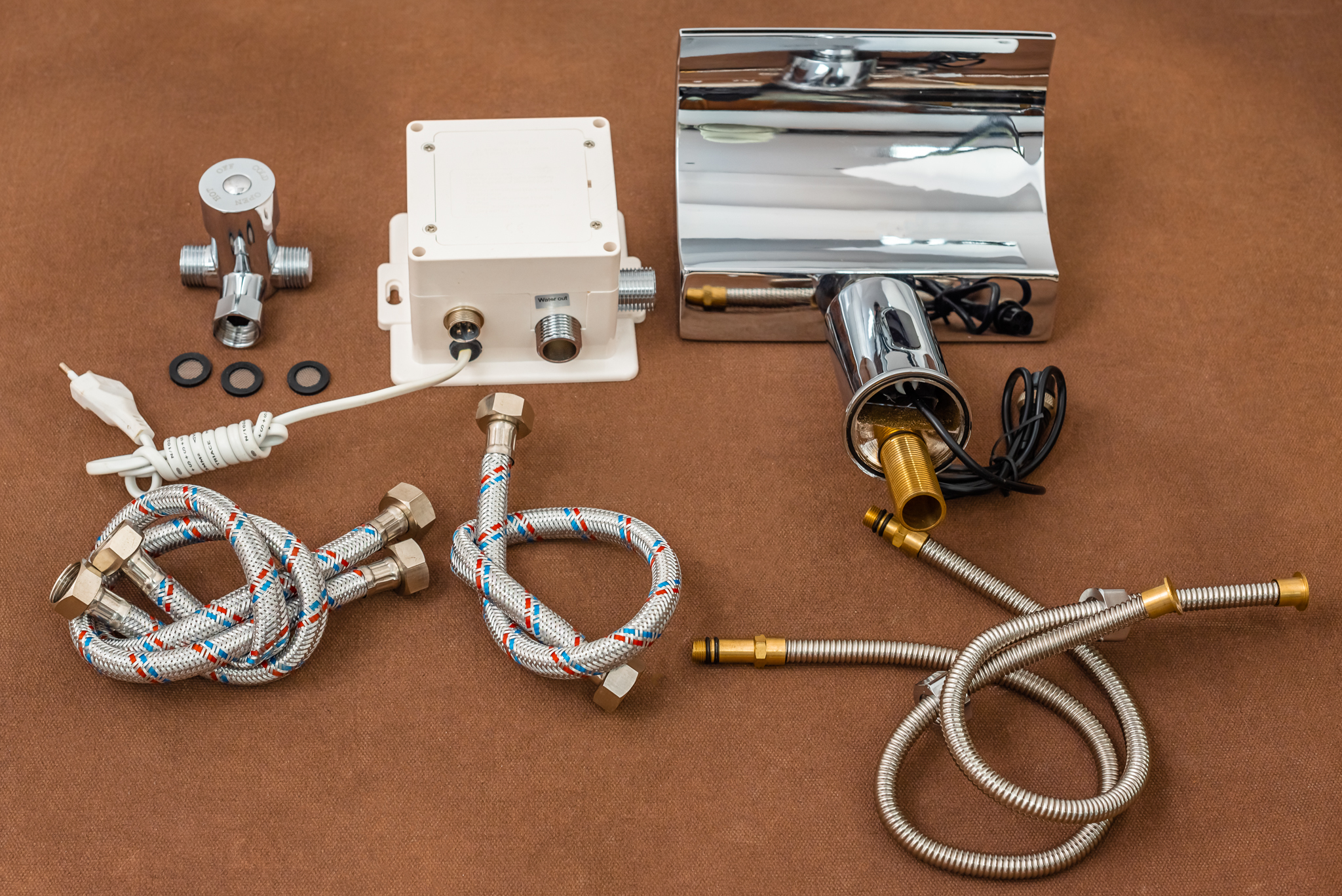 - Posibilitatea reglarii temperaturii apei cu ajutorul robinetului amestec cu 3 cai. Robinetul se monteaza sub lavoar conform schitei de montare a bateriei senzor inclusa in pachet.