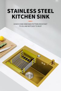 • Finisaj: Gri închis cu un design honeycomb, care reduce riscul de zgârieturi și previne acumularea de urme sau picături de apă.