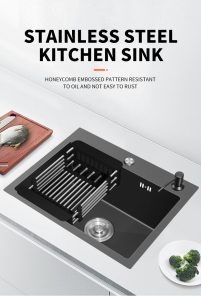 - Dimensiuni: 75×46 cm – oferă suficient spațiu pentru spălarea vaselor și pregătirea alimentelor.