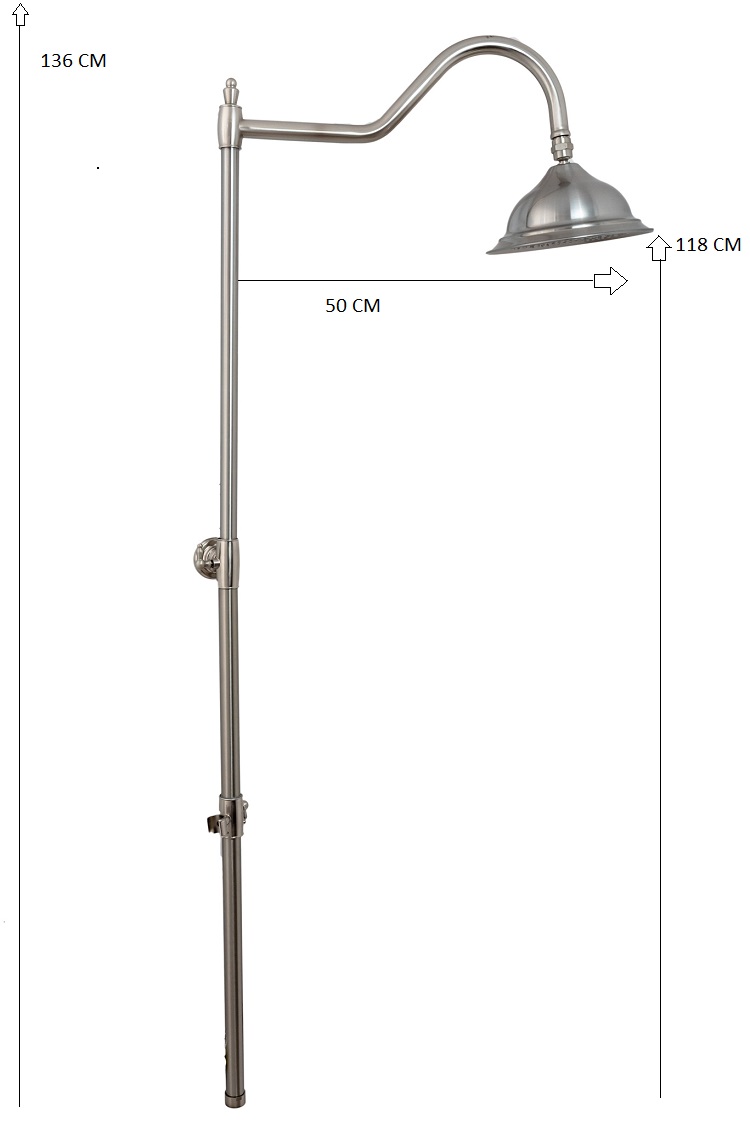 Coloana de dus este compusa din doua segmente culisante care permit reglarea inaltimii pana la 136 cm (aceasta este inaltimea in punctele maxime)