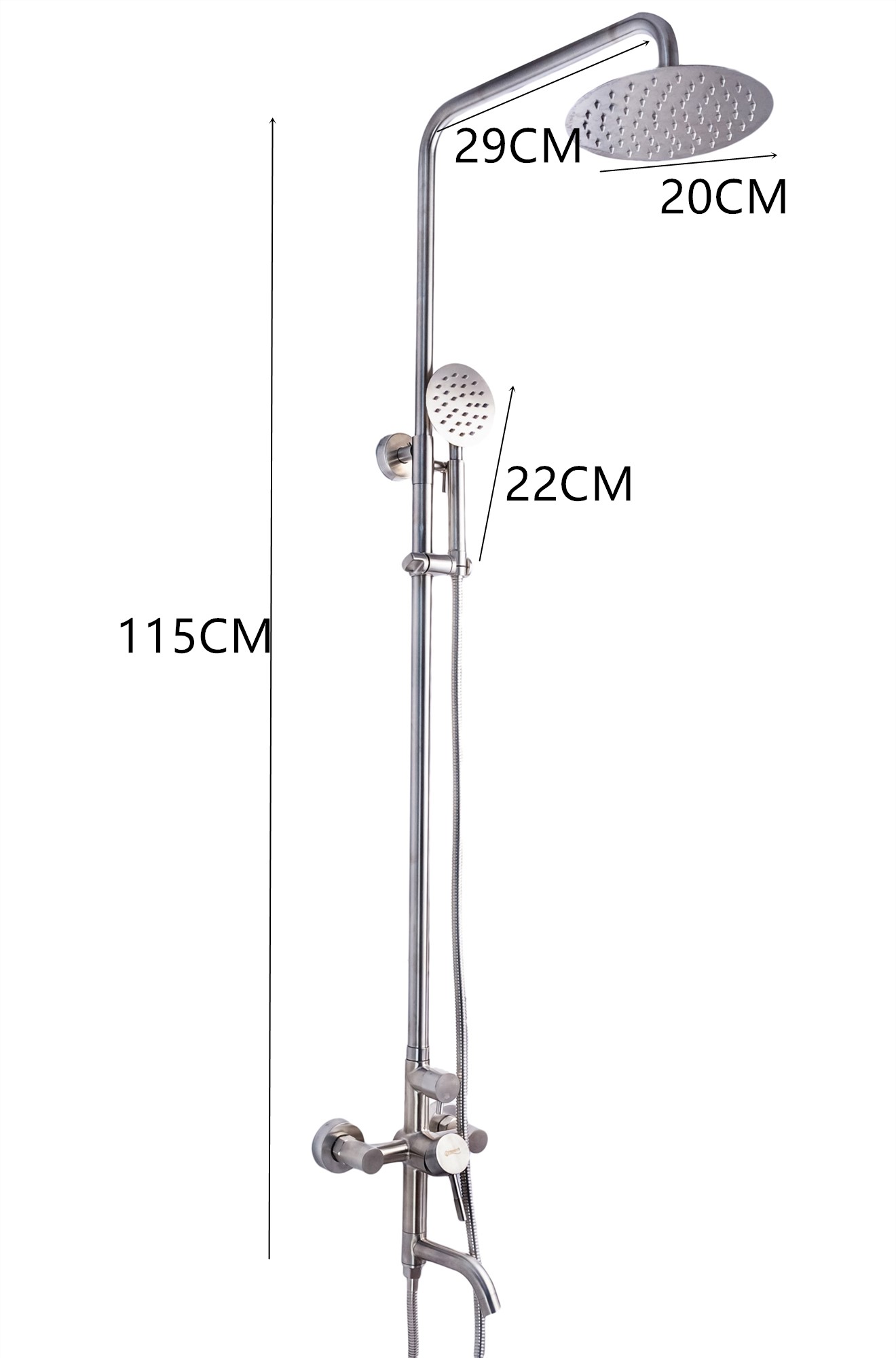 Inaltimea maxima a intregului ansamblu de dus este de 120 cm deaceea este idicat pentru a fii montat in cabina de dus .