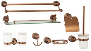 Etajera baie dubla , montare pe colt,bronz antichizat , Venustar