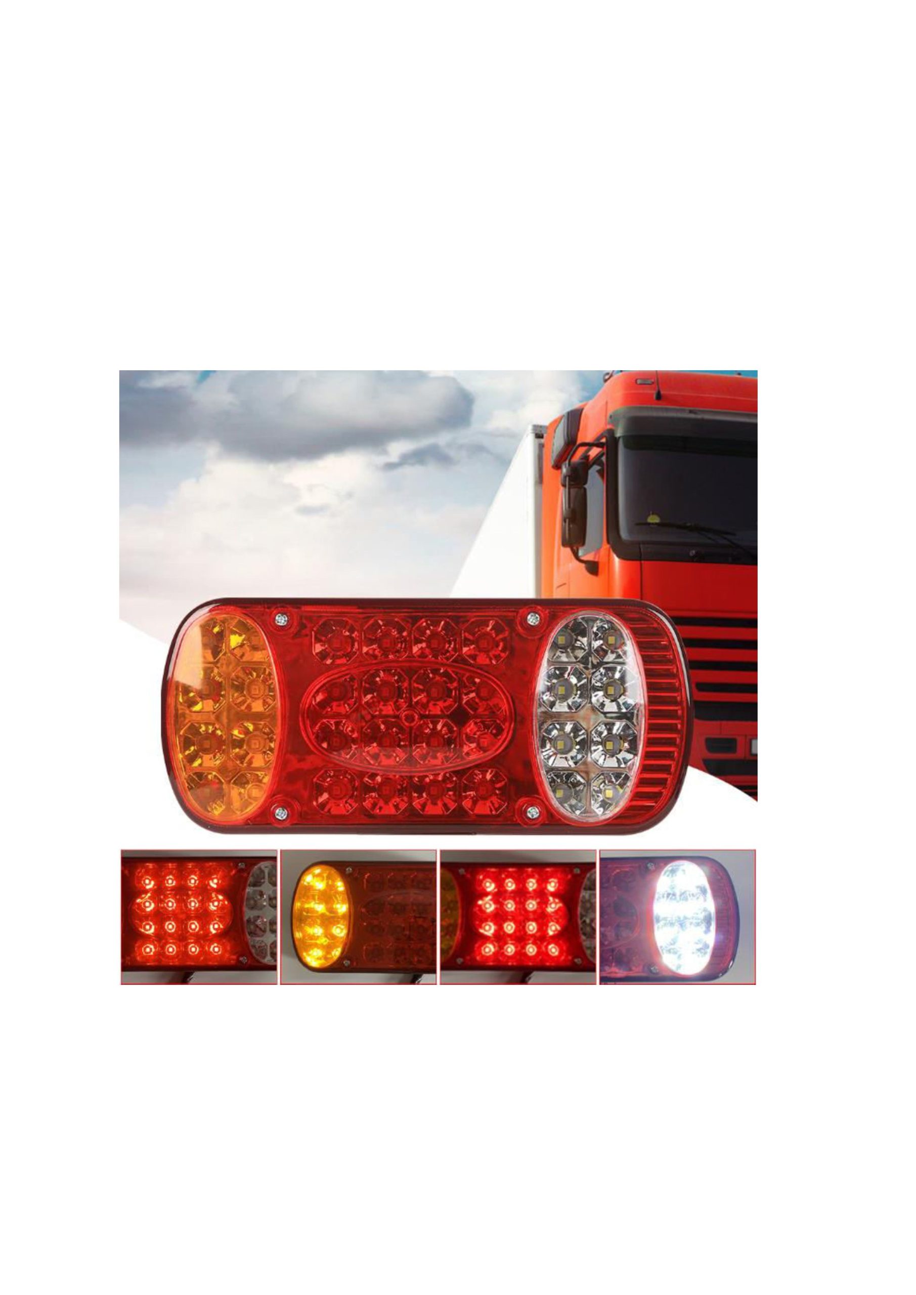 Lampa LED este o soluție completă de iluminare spate pentru camioane, remorci, pickup-uri și alte vehicule comerciale. Cu un design modern și 32 de LED-uri dispuse strategic, acest model oferă 4 funcții esențiale: poziție, frână, semnalizare direcție și marșarier. Funcționează pe tensiune 12–24V și este compatibilă cu majoritatea vehiculelor utilitare. Carcasa rezistentă din PC asigură durabilitate și protecție în condiții de exploatare intensă.