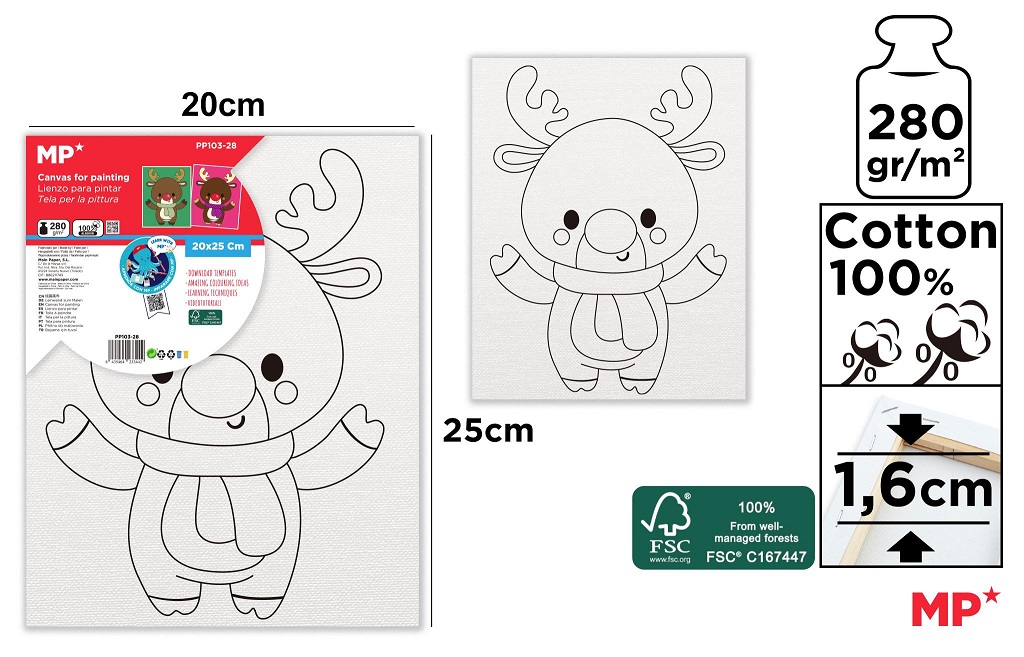 Panza de colorat pentru copii cu desen pretiparit. Fabricat din material 100% bumbac intins pe un cadru din lemn de 16 mm grosime si capsat pentru o fixare mai buna. Potrivit pentru pictura in ulei si acrilica. Masoara 20 x 25 cm.