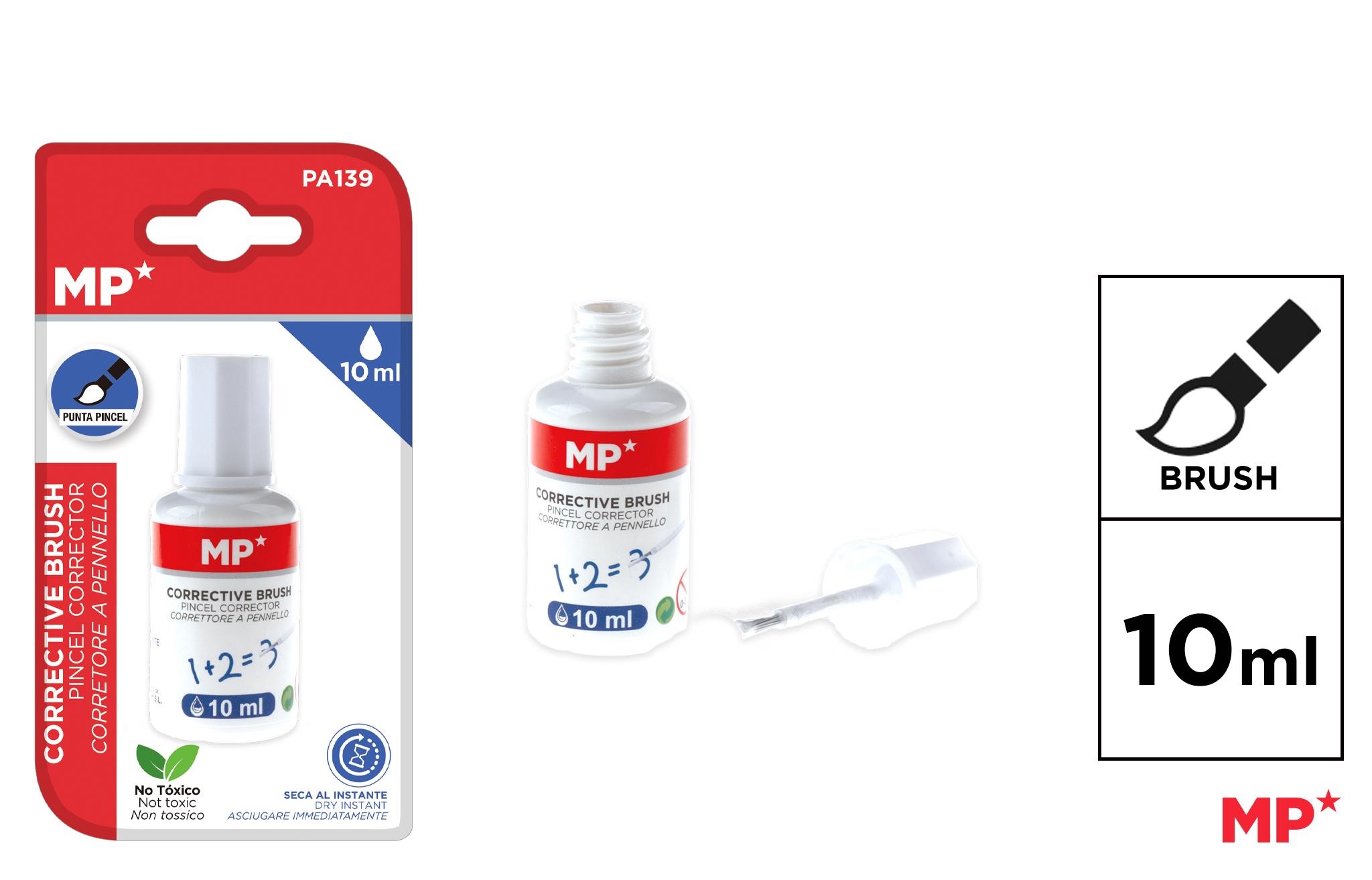 Corrector lichid in sticla cu aplicator pensula. Putere mare de acoperire si uscare foarte rapida care permite rescriere rapida. Non-toxic. Flacon de 10 ml. Blister de 1 unitate.