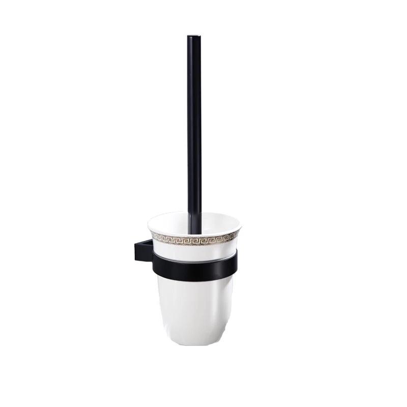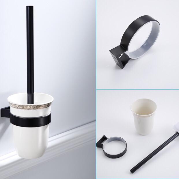 Perie toaleta culoare neagra pahar sticla prindere perete