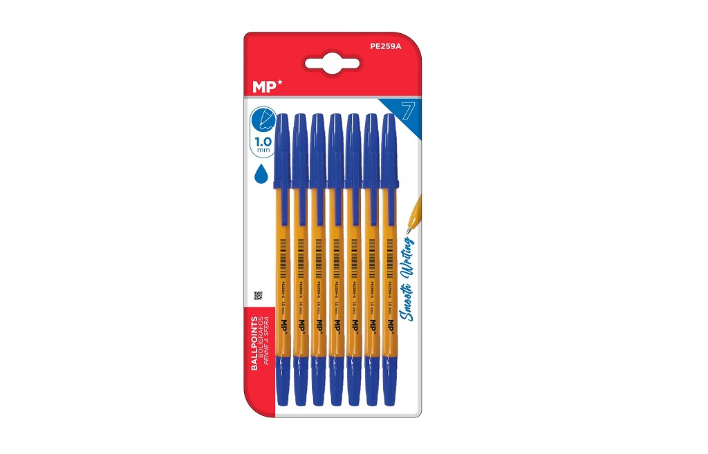 Pix cu corp si capac din plastic portocaliu. Capacul arata culoarea cernelii. Scriere foarte lina. varf de 1 mm. Cerneala albastra. Blister de 5+2 gratuit.