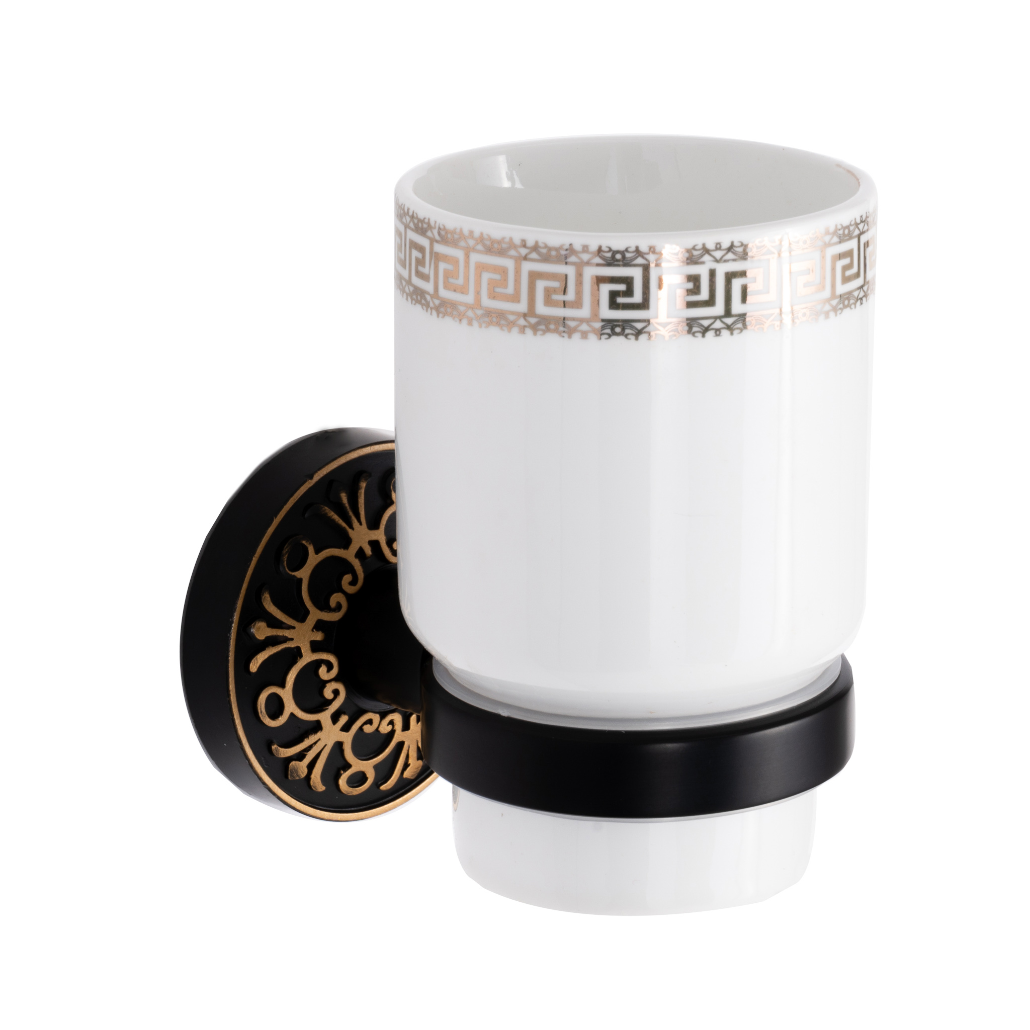 -Suport pahar , fixare perete , pahar ceramica alba cu broderie