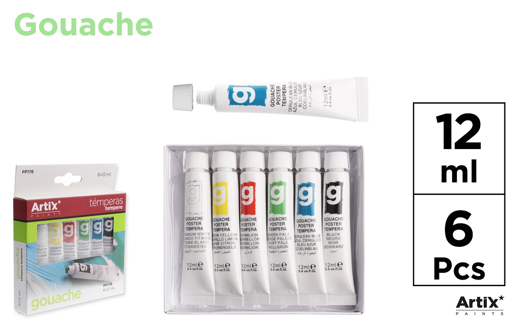 Vopseaua GUACHE TÉMPERA, poate fi aplicata nediluata sau amestecata cu apa pentru a obtine efecte mai fluide. Uscare rapida. Opacitate mare a pigmentilor. Cutie cu 6 tuburi de 12 ml in culori asortate.